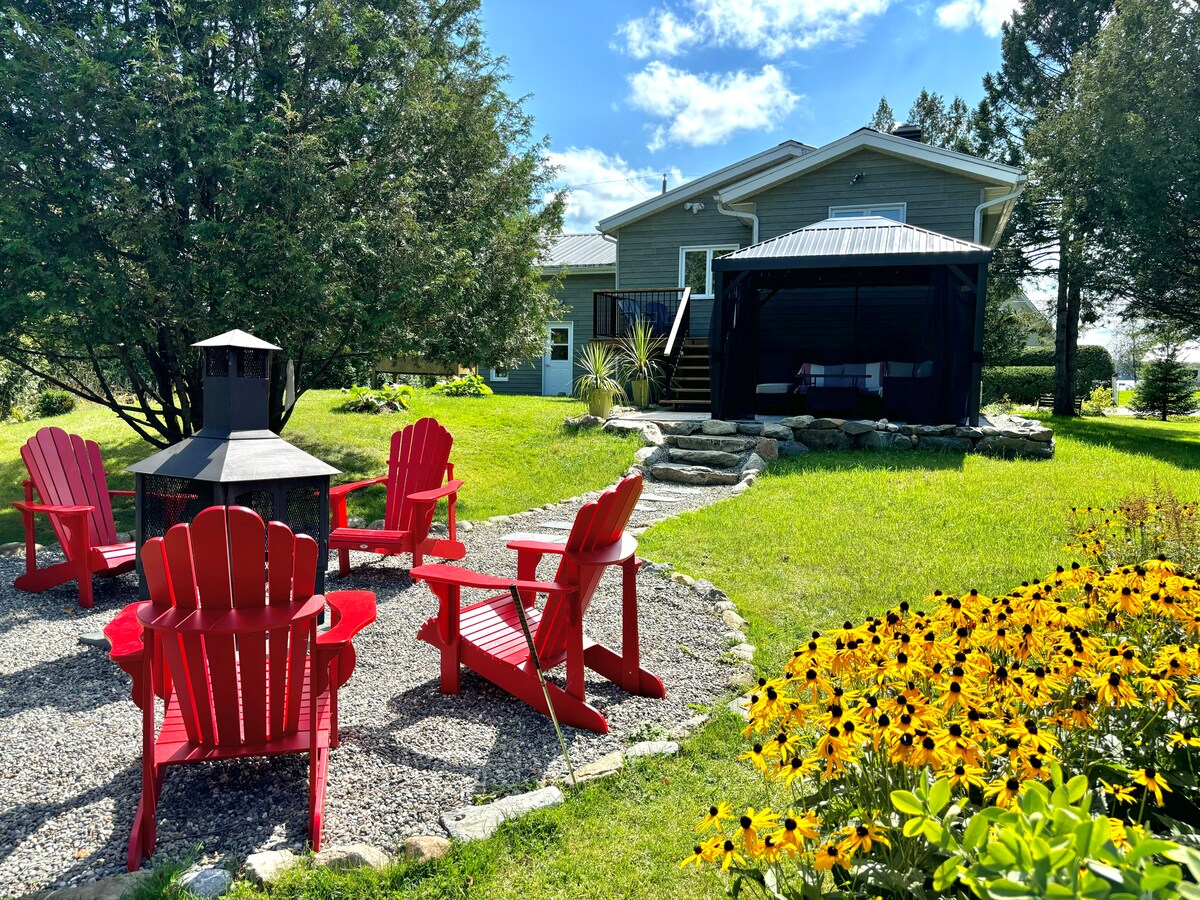 Din id-dar mibnija ġdida tinsab fuq il-propjetà tagħna ta '90 acre. Hija mdawra b' ġnien tal-frott, għelieqi tad-dwieli u foresta. L-ambjent kwiet u naturali huwa perfett għal koppji, vjaġġaturi waħedhom jew familji. L-iskiing, il-ġiri u l-mixjiet fit-tul fil-pajjiż jistgħu jiġu pprattikati fil-proprjetà. L-għoljiet tal-iskijjar ta 'Bromont u Sutton downhill jinsabu 35 minuta' l bogħod. Jay Peak, Vermont huwa 1h15 bogħod bil-karozza. It-toroq tal-kampanja tal-madwar jipprovdu rikbiet mill-isbaħ bir-roti.