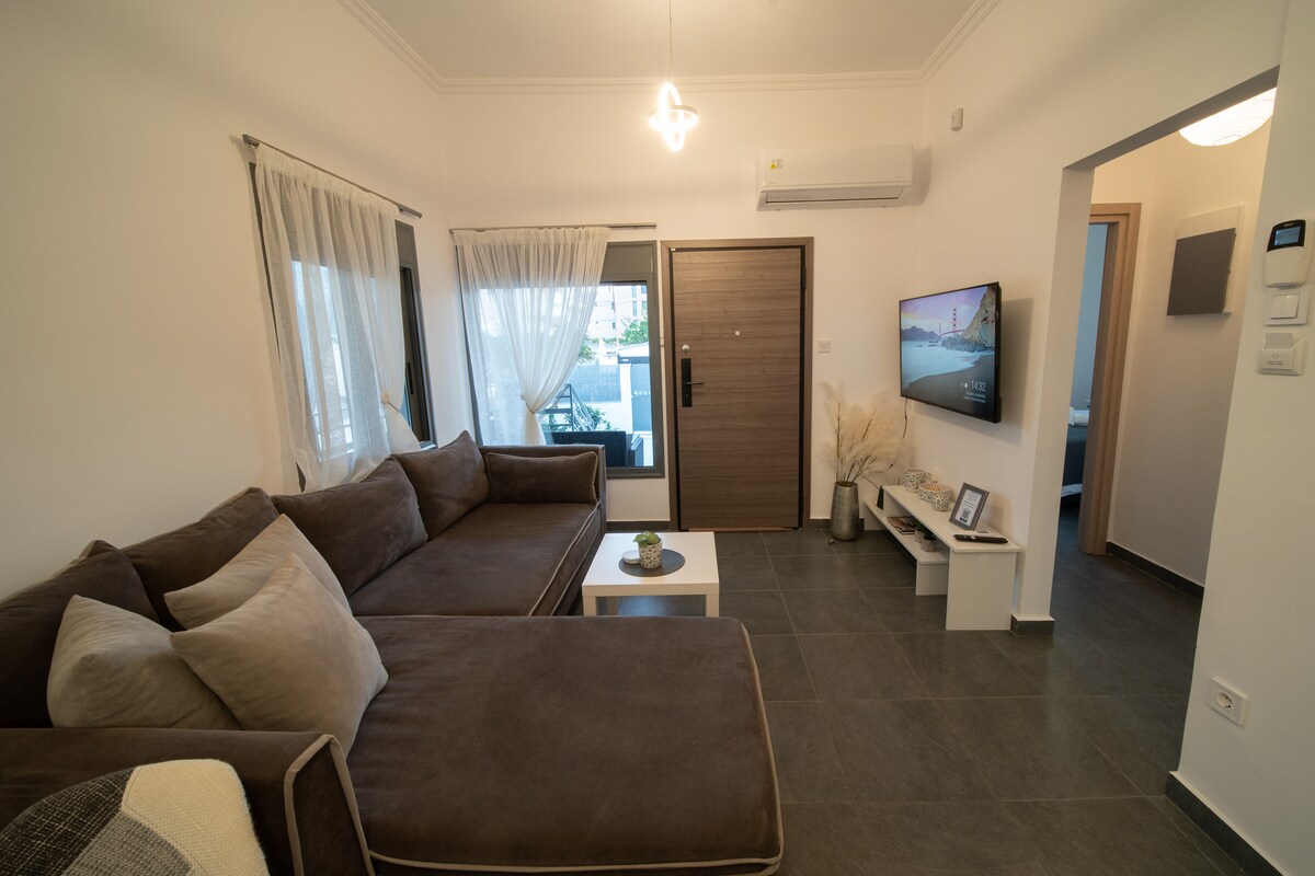 Gawdi l-btajjel tiegħek f' appartament modern fuq l-art tar-residenza ewlenija, b' veduta mill-isbaħ tal-baħar u l-port ta' Agioi Apostoloi. Mgħammra b' kollox, tinsab qrib il-Bajja ta' Klimaki b' ġnien spazjuż u żoni kbar fuq barra biex tieħu gost. Ideali għall-vaganzi rilassanti!