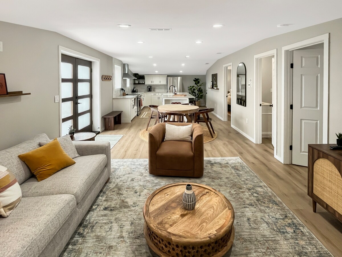 Merħba f' Pecan Grove Retreat, suite tal-klijenti stramba u eleganti li tinsab fuq lott paċifiku ta' 1 ettaru fil-qalba ta' Sherman, TX. Dan mehmuż, iżda l-ispazju privat għandu l-kumditajiet u l-kumditajiet kollha li tista' tixtieq għal żjarat fit-tul jew għal żmien qasir. B' enfasi fuq is-sigurtà u l-privatezza għall-COVID-19, Pecan Grove Retreat għandha l-parkeġġ privat tagħha u d-daħla magħluqa li jwassluk għall-vaganza kwieta tiegħek.