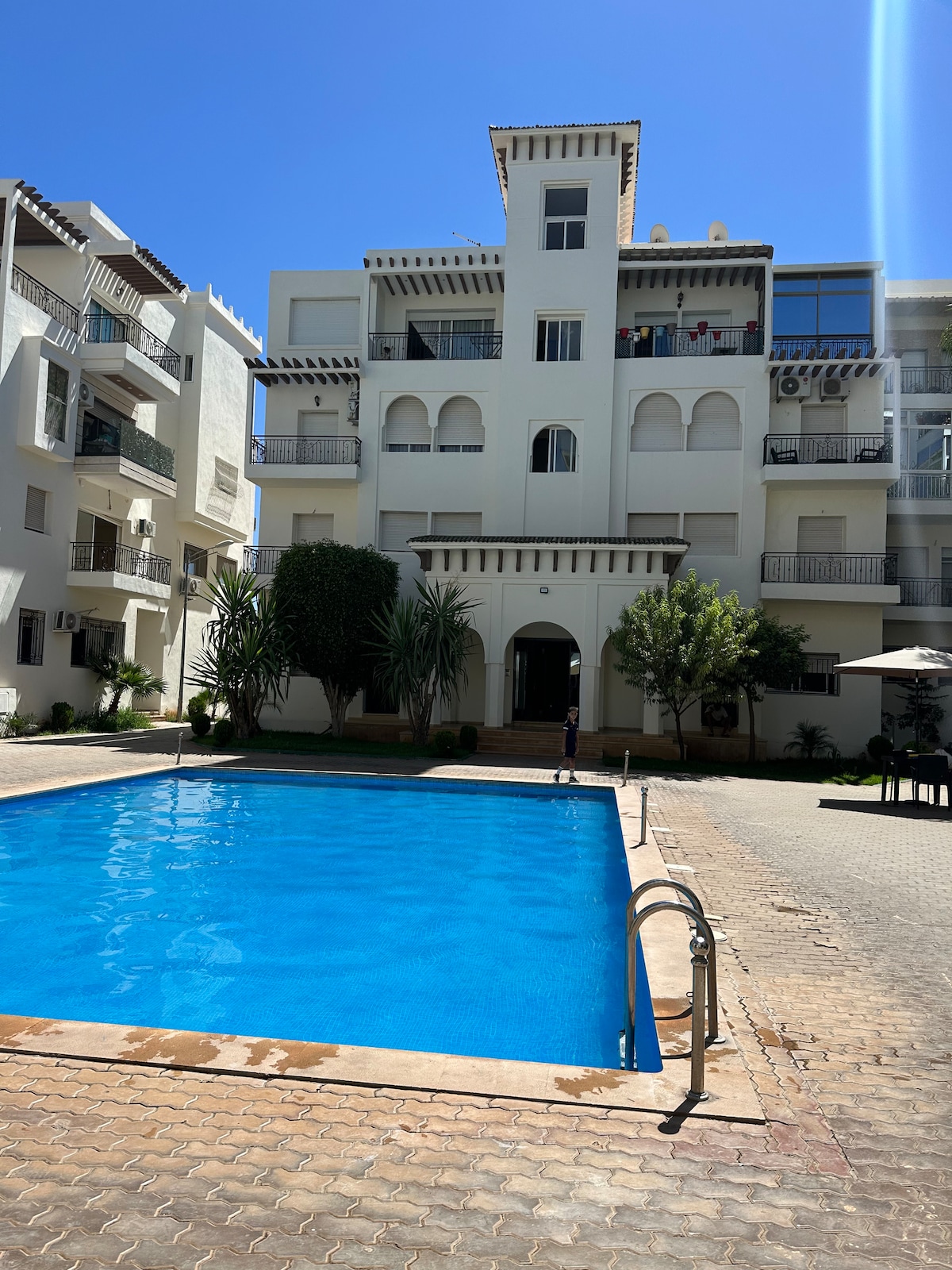 - Résidence haut standing située devant l’entrée du parc d’Amérique latine et surveillée 24/24 avec caméra + concierges. - Accès piscine gratuit (maximum 4 personnes en même temps) - Épicerie juste devant la résidence - Climatisation dans toutes les chambres + salon. - 1 grand lit de 180 cm + 1 lit 160 cm + 2 lit 90 cm - Les TV sont Smarts - Totalement sécurisé pour les enfants (grillage dans toutes les fenêtres + balcon) - Place parking privée - Couples marocains non mariés non acceptés.