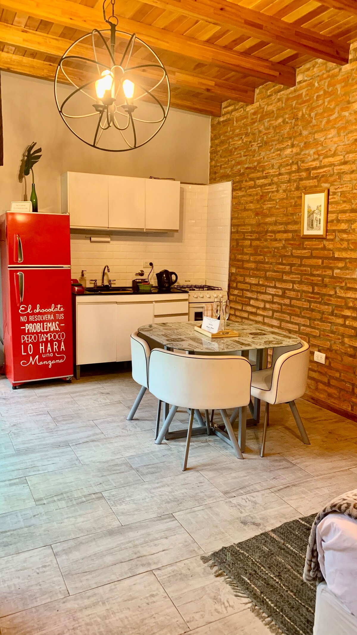 Din hija appartament-dar li ġiet irranġata dan l-aħħar b' ħitan tal-briks ħomor oriġinali, soqfa għoljin u travi tal-ħadid li jagħtuha messaġġ speċjali iżda kontemporanju. Komdu, spazjuż u mdawwal, joffri ħafna kumditajiet għall-aqwa żjara ġewwa Rosario. Tinsab strateġikament fiċ-ċentru tal-blokk, tgawdi minn serħan il-moħħ u kwiet uniku. Tinsab fil-viċinat ta' El Abasto, hija faċilment aċċessibbli miċ-ċentru tal-belt, min-negozji, mit-trasport pubbliku u bil-mixi.