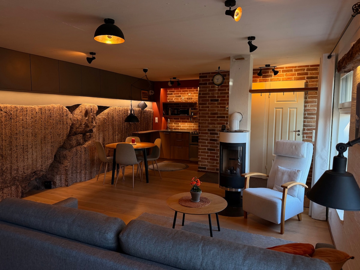 Appartament loft eżatt fuq ix-xatt tax-xmara Aura, faċċata tal-marina, qrib iċ-ċentru tal-belt. L-appartament jinsab fil-bini ta' kumpanija ta' tarznari antika. L-arkitettura industrijali toħloq atmosfera speċjali għall-għajxien, li m'hemmx f'appartamenti tradizzjonali. Tħoss l-atmosfera hekk kif tidħol fil-bini. Travi tal-ħadid u tal-konkrit kif ukoll atmosfera sabiħa huma preżenti wkoll fl-appartament innifsu. Parkeġġ b'xejn fiż-żona.