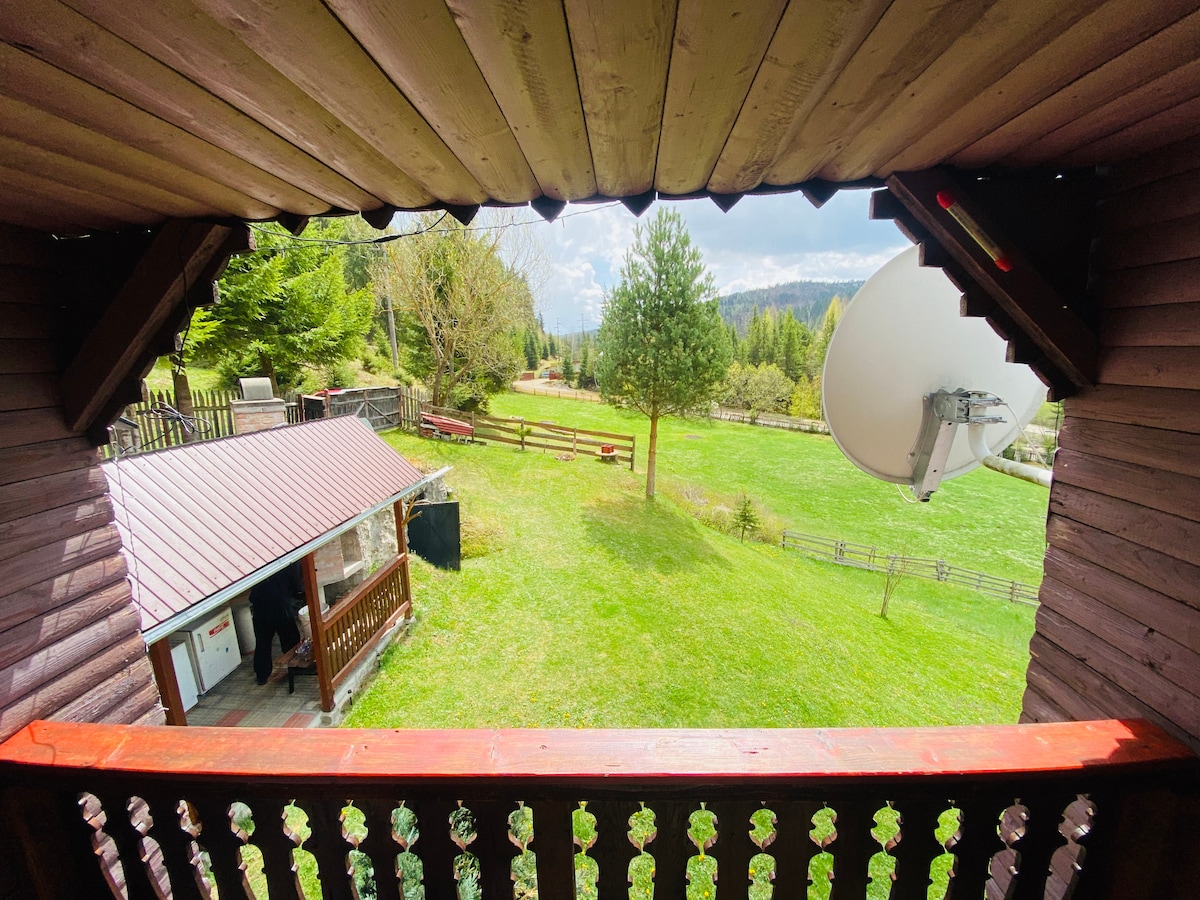 Kabina maħduma bl-idejn imqiegħda 'l fuq fil-Karpazji tal-Lvant. Gawdi veduti tal-muntanji, sunsets tad-deheb mit-terrazzin u silenzju sħiħ. Ideali għall-koppji, għall-familji bit-tfal, għall-kittieba u għal dawk li jħobbu n-natura. L-ebda ġirien, l-ebda storbju — int biss, il-foresta u s-sema.