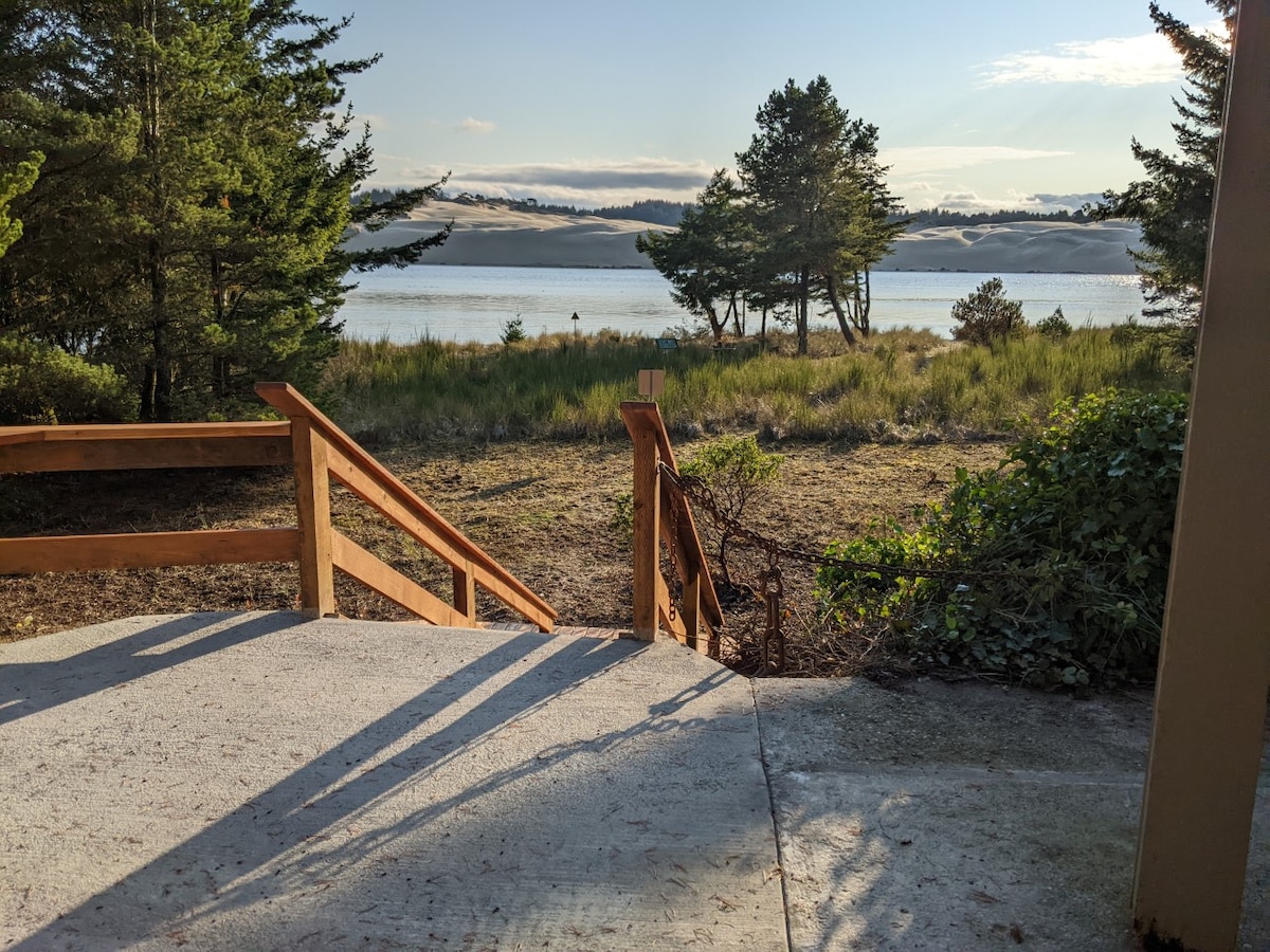Meta tħares lejn ix-xmara, id-duni tar-ramel u l-oċean, din id-dar impressjonanti ta '3 bd Cape Cod tiġbor veduti minn kull kamra!! Il-pjan tas-sular miftuħ u d-dekor ta 'ġewwa jagħmluha faċli biex wieħed jieħu gost bi kċina tal-koki. It-terrazzin huwa espost għall-elementi tal-Kosta ta 'Oregon u jimmaġina l-fawna selvaġġa u s-sbuħija naturali tiegħu. Din id-dar hija mgħammra biex tidħol minn ġewwa u minn barra b 'jacuzzi li jinsab barra mill-kamra tas-sodda ewlenija. Tinsiex tgawdi l-fireplace tal-blat tax-xmara għal dawk l-iljieli kesħin. Nilqgħuk!