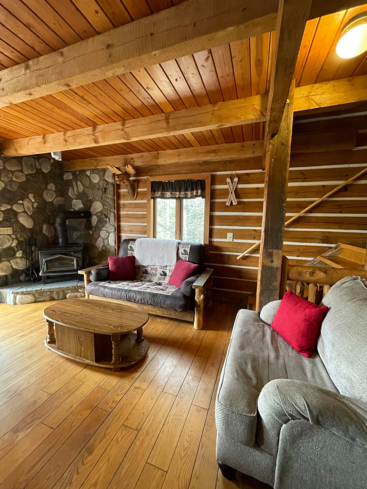 Gawdi veduti mill-isbaħ tal-muntanji f' din il-kabina ta' 3 kmamar tas-sodda, li tinsab biss 5 minuti mixi 'l bogħod mil-lifts Ski Brule. Ixgħel il-grill tal-gass u tospita cookout fuq il-gverta ta 'wara panoramika. Qatta' l-iljieli tiegħek jagħmlu s'ores fil-ħofra tan-nirien, imbagħad komdu ġewwa mal-forn li jaħraq l-injam ġewwa filwaqt li tara s-servizzi ta' streaming favoriti tiegħek. Kabina perfetta biex tiltaqa' u tirrilassa mal-ħbieb u mal-familja.