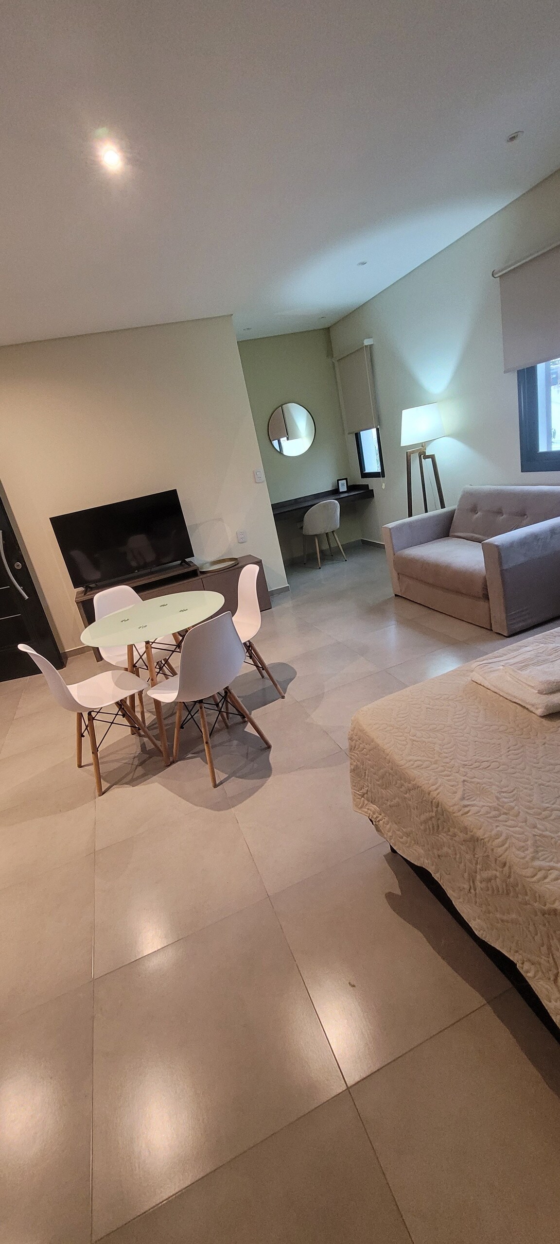 Depto moderno · Planta baja · Complejo cerrado Las Américas 💑 PAREJAS: Cama King, ambiente íntimo, privacidad total 🎯 UBICACIÓN: Aeropuerto 8 min · Centro 12 min · Universidad 800m 🛏️ FLEXIBLE: 2 camas convertibles en King + sofá marinera (hasta 4 personas) ☕ BIENVENIDA: Canasta de desayuno incluida 🚗 PARKING: Techado y asignado dentro del complejo ✨ EQUIPADO: A/C · WiFi 336 Mbps · Smart TV · Lavarropas 🕐 Check-in flexible · Check-out autónomo Perfecto para Parejas, negocios, familias.