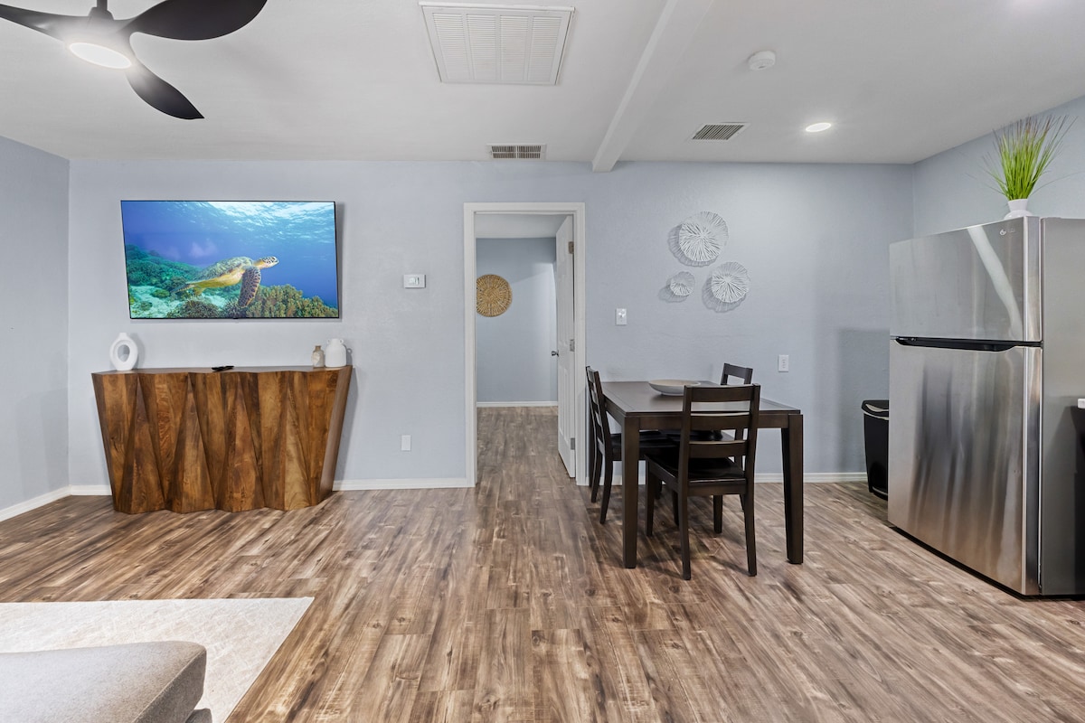 The Calm Landing – Post fejn Toqgħod Paċifiku Qrib l-Ajruport u l-Park Studio privat **L-EBDA TARIFFA GĦAT-TINDIF ** Skopri post kwiet fejn toqgħod biss 5 minuti 'l bogħod mill-Ajruport ta' El Paso. Dan l-istudio serju joffri daħla privata, parkeġġ faċli u disinn minimalist kalmanti. Mur barra għal park tal-viċinat paċifiku ftit piedi 'l bogħod, jew irrilassa fuq ġewwa fl-ispazju komdu tiegħek stess. Kemm jekk qiegħed hawn biex tirrilassa, terġa' tiċċarġja jew tesplora ż-żona, dan il-ħabi kwiet jinħass qisu qiegħed id-dar mill-mument li tasal.