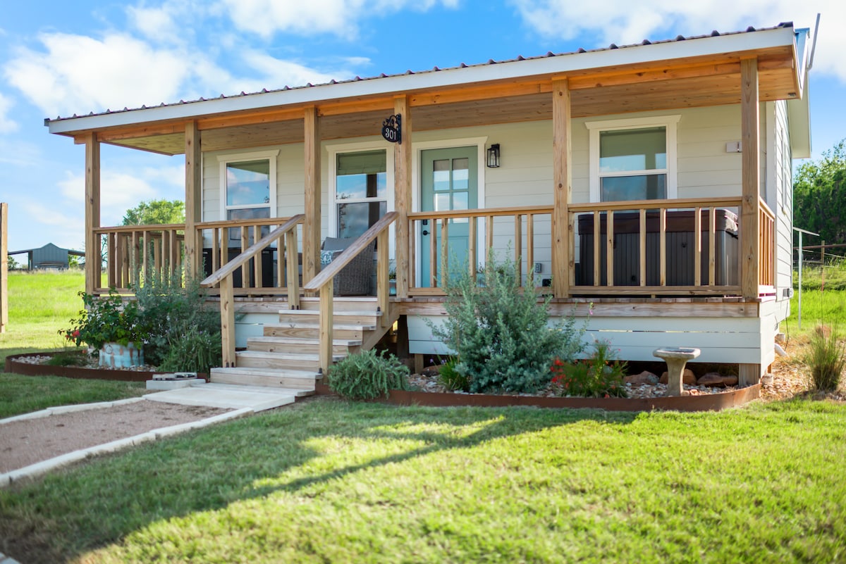 Merħba fil-kabina moderna fil-bosk. #TheAveryHouse tinsab barra minn Kerrville u madwar 20 minuta biss mill-fabbriki tal-inbid ta' Fredericksburg. Mur fix-xmara Guadalupe fi żmien 10 minuti. Il-kampeġġ, l-isports tal-ilma, il-mixjiet fit-tul, is-sajd, l-ikel u l-inbid jinsabu kollha f' distanza qasira minn din id-dar ċkejkna moderna ta' 600 pied kwadru. Aqla' l-ħsejjes tan-natura u tal-kamra biex toqgħod fuq terrazzin ta' daqs żejjed. Gawdi ftit ħin ta' kwalità madwar in-nirien fil-kamp, u verament aqbad ma' dawk li tħobb f' dan il-vaganza unika.