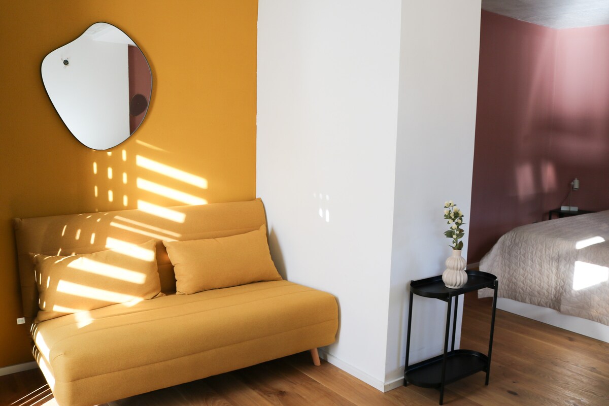 L-appartament huwa 44 m² u jikkonsisti f 'żona fejn tgħix/tiekol bi kċina miftuħa, kamra tas-sodda separata, kamra tal-banju privata u żona fejn toqgħod bilqiegħda fuq barra. L-appartament u l-għamara kollha huma ta 'kwalità għolja u miżmuma tajjeb ħafna. Irridu noffru ż-żona tal-klijenti tal-komunità ta 'Airbnb tagħna jekk ma nużawhiex privatament. Nistennew bil-ħerqa klijenti sbieħ li japprezzaw il-madwar sabiħ u l-ambjent.
