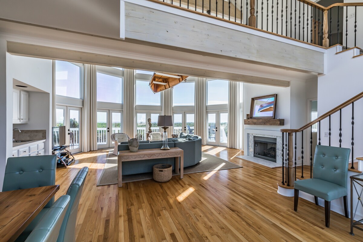 Irrilassa, irrilassa u rrilassa fis-siġar f 'xifer l-Atlantiku fit-Treehouse privata tagħna li tħares fuq il-marsh tal-ilma mielaħ. Twieqi panoramiċi mill-art sas-saqaf imgeżwra madwar it-treehouse kollha. 2 Kamra tas-sodda 2 Kamra tal-Banju Treehouse bi 3 sulari. Ara x-xemx tiela 'mill-kumdità tas-sufan, orqod fil-hammock tal-ħabel komdu, jew ħu cruise fil-karozza tal-golf ġdida fjamanta inkluża fiż-żjara tiegħek. Kemm tirkeb karozza tal-golf qasira ta '5 minuti lejn il-bajja. Il-ġenna privata qed tistenniek