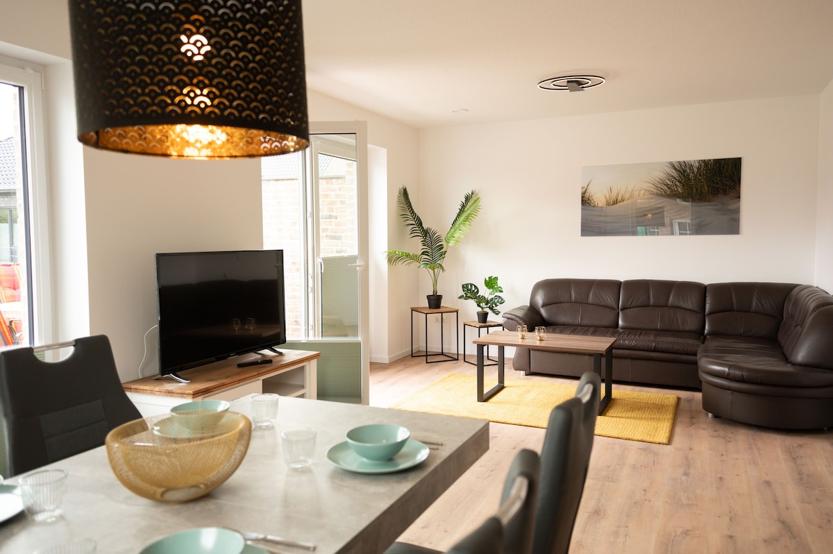 Gawdi esperjenza eleganti fl-akkomodazzjoni tagħna ta' 86 metru kwadru. Id-dar tat-townhouse għandha żona kbira fejn toqgħod u tiekol, kċina mgħammra b' kollox, kamra tal-banju bit-tojlit, tojlit għall-klijenti u żewġ kmamar tas-sodda, kif ukoll żewġ terrazzin biex tiggrilja u tgawdi mix-xemx. Jinsab f' post dirett lejn il-marina Norddeich. Il-baċin lejn Norderney u Juist kif ukoll l-istazzjon tal-ferrovija Norddeich Mole jistgħu jintlaħqu fi ftit minuti (400m) bil-mixi.