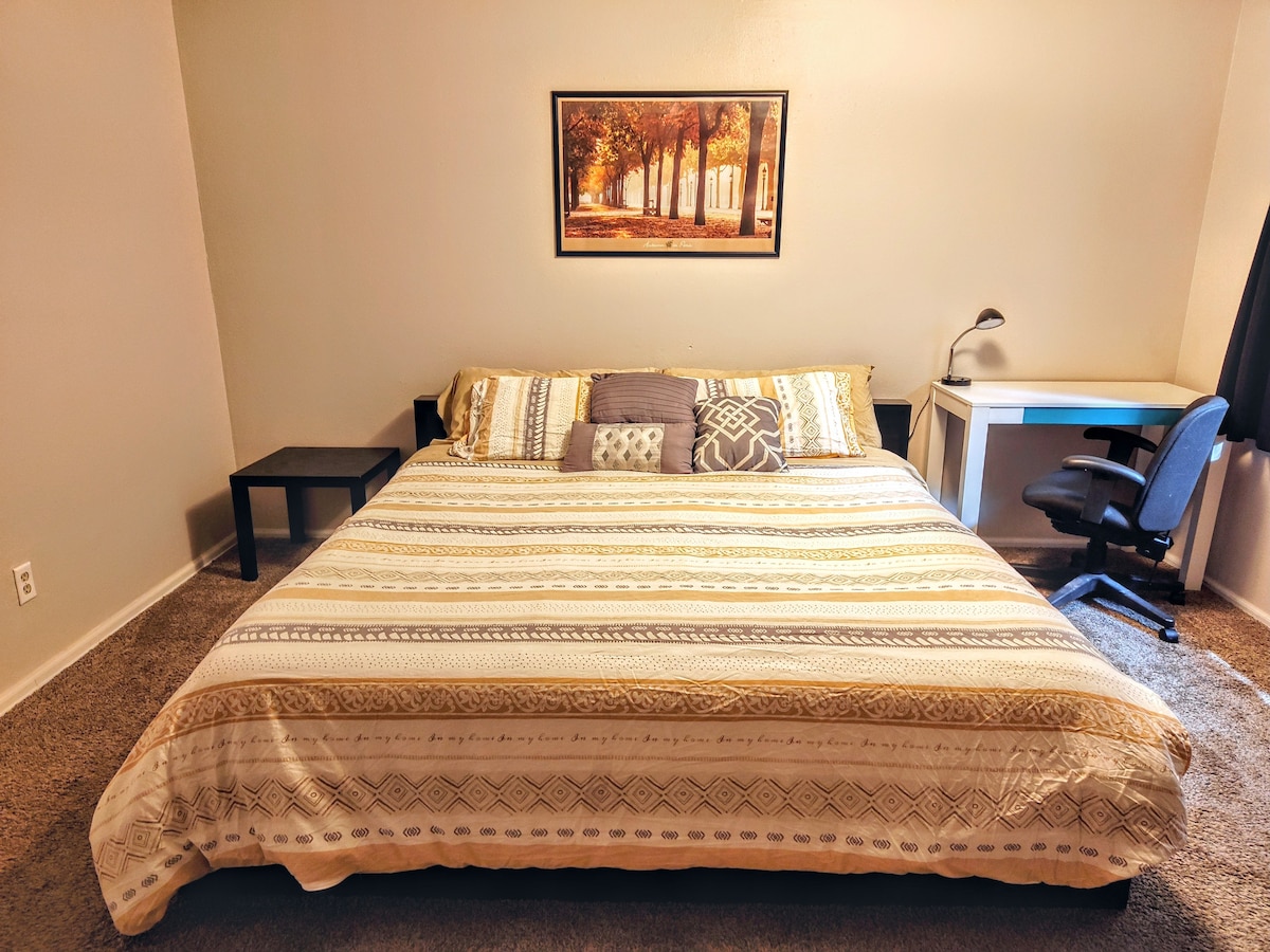 Id-dar sabiħa tagħna toffri kamra tas-sodda waħda b' kamra tal-banju en-suite li għandha taħlita ta' banju/doċċa. Il-kamra għandha wkoll kċina mgħammra b' microwave, friġġ żgħir, forn toaster, hot plate, Keurig, għodod, borom u taġnijiet, platti, kikkri, skutelli, kafè, krema u zokkor. Hemm sodda queen komda ħafna, żewġ dressers tal-irġiel, skrivanija u siġġu u smart TV ta' 55 pulzier. Se jkollok daħla separata u tidħol mill-bieb ta' barra. Huwa spazju kompletament privat mingħajr spazji maqsuma mal-oħrajn.
