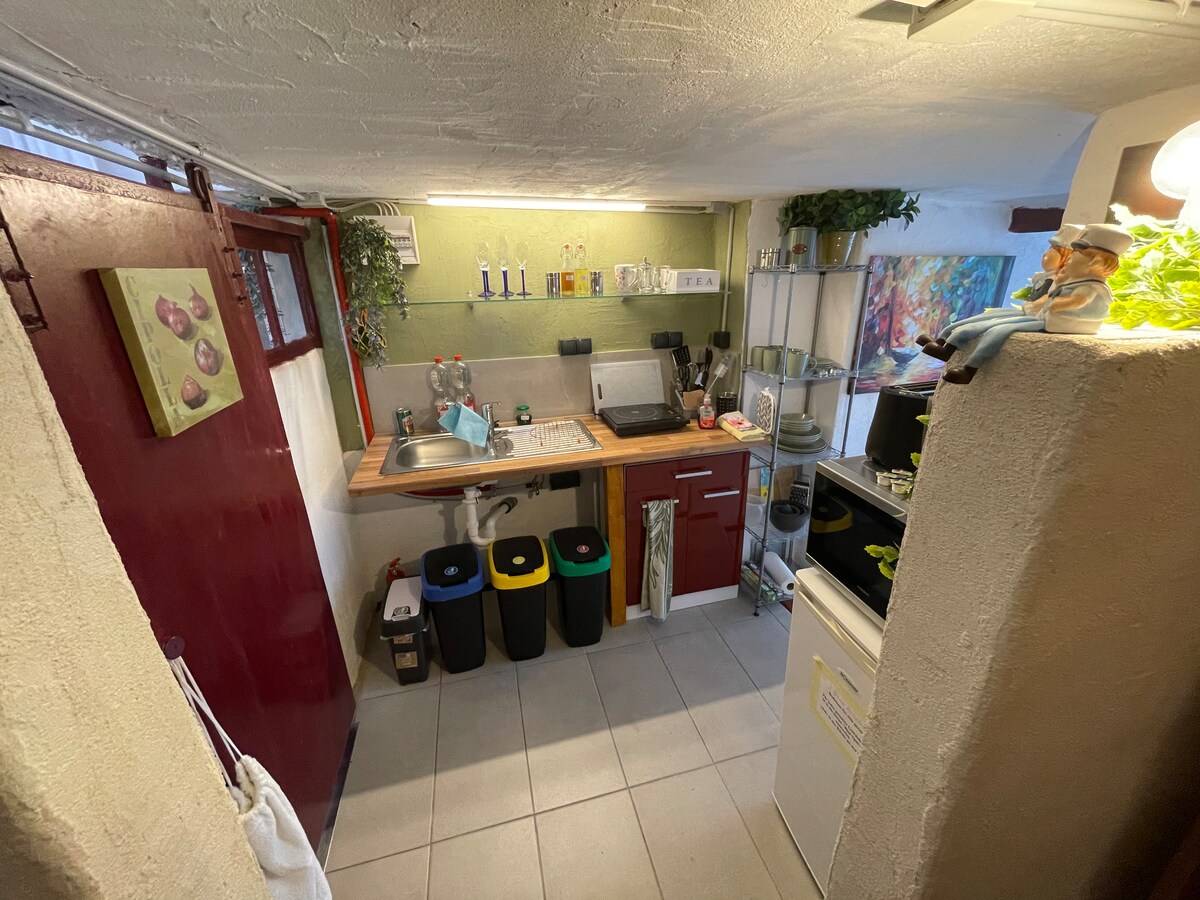 Appartament fil-kċina mdawwal u li għadu kif ġie rranġat f' dar tal-familja b' 6 familji. Fil-periferija tar-raħal ta' Stahle, id-distrett tal-belt tal-wirt dinji ta' Höxter fil-Weserbergland sabiħa, direttament fuq Weserradweg. L-appartament żgħir (34 m2) jista' jiġi bbukkjat għal 2 sa 4 persuni u għandu kamra tas-salott, kċina u kamra tal-banju. Jista' jintuża wkoll ġnien kbir b' postijiet fejn toqgħod bilqiegħda u żona għall-banju tax-xemx. Pets iżgħar aċċettati. Il-wifi huwa disponibbli.