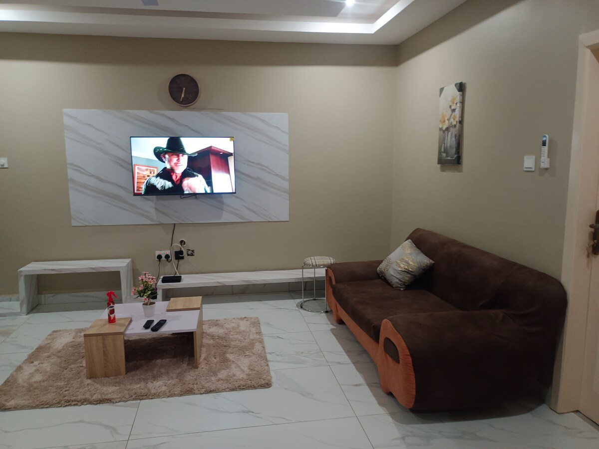 The apartment is 40mins drive from the airport and 20mins from Achimota mall, in a gated serene neighborhood. Has a 24/7 security and a car park, basketball court and a swimming pool for both children and adults.