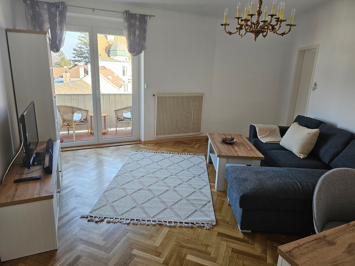 Appartament eleganti u kbir li jinsab f' żona kwieta qrib iċ-ċentru tal-belt. Żewġ ikmamar tas-sodda, żewġ tojlits separati, kamra tal-banju komda, kċina spazjuża u kamra tas-sedili b' oriel. Huwa marbut sew mat-trasport pubbliku u l-parkeġġ taħt l-art huwa disponibbli (mhux adattat għal vetturi kbar). Il-post ċentrali tax-xiri u diversi parks jinsabu 'l bogħod bil-mixi. Gawdi żjara bla xkiel fil-belt ta' Baden b' konnessjonijiet tat-trasport eċċellenti lejn Vjenna ċentrali.