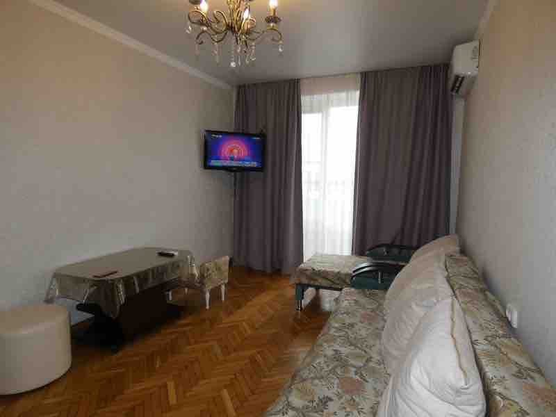 Appartament bi studio b 'żewġt ikmamar tas-sodda f' Sukhum. L-appartament huwa mgħammar bl-affarijiet essenzjali kollha meħtieġa għal żjara u mistrieħ komdu. Saret rinnovazzjoni friska. Il-baħar jinsab minn naħa għall-oħra tat-triq b 'bajja wiesgħa bir-ramel. L-appartament jinsab fiż-żona tal-park, fil-qrib hemm ħwienet, spiżeriji, kumpless tal-bajja Mokko, kafetteriji, pats (fejn jista 'jkollok ikliet ħelwin u rħas). Bit-trasport pubbliku lejn iċ-ċentru tal-belt 12-15-il minuta, lejn is-suq 17