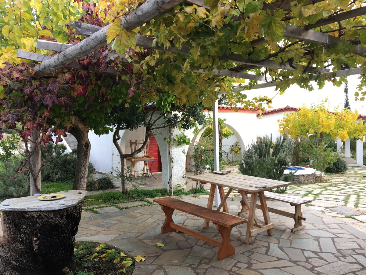 Dar moderna tal-kampanja, ambjent eleganti iżda familjari, post maħluq għal dawk li qed ifittxu atmosfera għall-kwiet bejn in-natura, l-ikel tajjeb u s-sbuħija. Il-gżira ta 'Evia toffri l-aħjar soluzzjoni għal dawk li jixtiequ jgawdu l-vaganzi tas-sajf qrib il-baħar, iżda ma jridux jitilfu l-kumdità kollha li toffri l-belt il-kbira, 99 km biss' il bogħod minn Ateni ,130 km mill-ajruport ta 'Ateni. Spazji privati kbar fuq barra, b 'pixxina u ġnien privati. Għix esperjenza unika, bejn kultura, rilassament u natura.