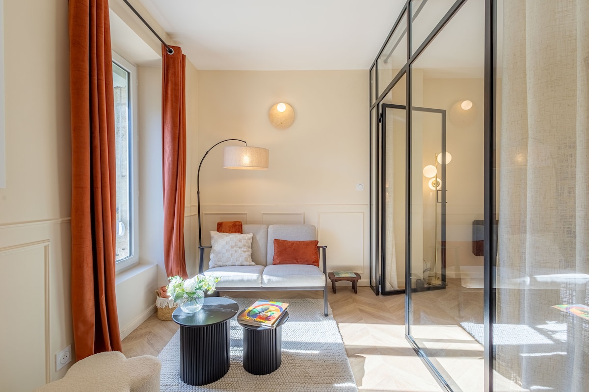 Dan l-appartament ċentrali bid-dawl huwa perfett għal koppja jew grupp ta 'erba' ħbieb. Għandha terrazzin privat u gallarija li tħares lejn ir-Rue de la Tour du Pin. Il-kamra tas-sodda ewlenija hija mżejna b 'forom karatteristiċi u torqod żewġ persuni, filwaqt li sodda doppja tas-sufan hija disponibbli fis-salott. Dan il-post huwa ideali biex tirrilassa wara jum li żżur iċ-ċentru storiku tal-belt.