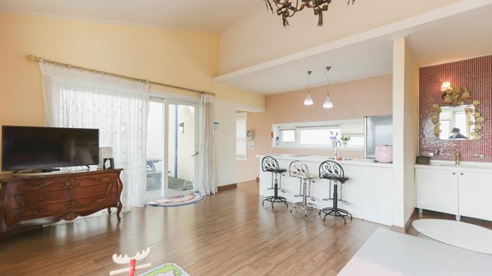 Hemm distanza mid-djar tal-madwar, għalhekk huwa kwiet u tista' toqgħod mingħajr ma tiddisturba lil ħadd. L-ewwel sular jikkonsisti f 'parkeġġ, kamra tal-ikel, kċina fit-tieni sular, salott, kamra waħda, tojlit u t-tielet sular jikkonsisti fi tliet kmamar u tojlit. Tista 'tara Mangsan u Geojebyeonsung fl-akkomodazzjoni. Huwa jinsab 15-il minuta 'l bogħod mill-attrazzjonijiet turistiċi ewlenin f' Geoje.