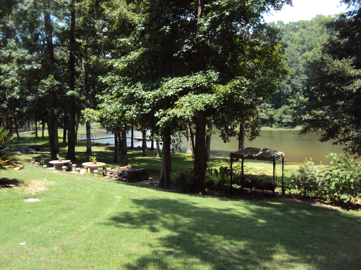 Il-faxxinu tal-lag tan-Nofsinhar perfett għal romantiċiżmu, divertiment tal-familja u vaganzi. Daħla sabiħa kwieta. Veduta tal-lag. Mixja fuq livell sal-ilma. Dokk tad-dgħajsa, swing, 2 kayaks, imwejjed tal-pikniks, grill, fossa tan-nar. 45mins. sa Ft. Benning. 30 min. sa Providence Canyon. 15-il minuta sa Lakepoint State Park. Id-driveway ċirkolari hija privata, faċli biex tidħol/toħroġ għat-trejler/dgħajjes. Xiri, ristoranti u tnedija tad-dgħajjes w/f 'mil 1. Bitħa kbira. Banju Jacuzzi, WIFI, Cable. 3 sodod: king, queen, mimli. 2 kmamar tal-banju sħaħ. Jakkomoda 6. *Il-pets aċċettati mingħajr approvazzjoni.