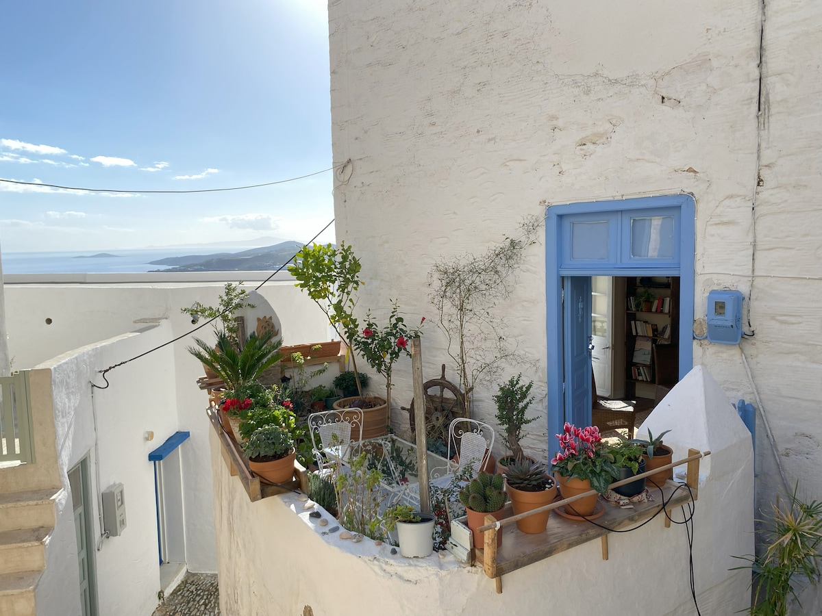 Dar tradizzjonali unika tal-ġebel, fil-villaġġ medjevali ta' Ano Syros. Id-dar hija liċenzjata mill-EOT bħala akkomodazzjoni turistika. Jmur lura għall-aħħar tas-seklu 16. Irrinnovat kompletament mingħajr ma nbidel il-karattru tradizzjonali tiegħu. Fuq is-sular ta' fuq hemm is-salott (b'sodda doppja) kif ukoll il-kċina (fuq barra). Fil-pjan t'isfel hemm il-kamra tas-sodda, b'sodda doppja, u l-kamra tal-banju. Ideali għal żewġ persuni, filwaqt li jista' jakkomoda sa erba' persuni.