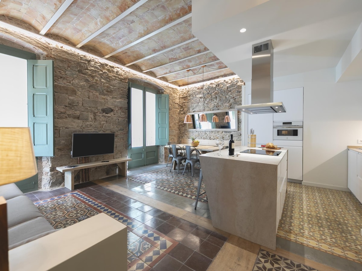 Appartament storiku riabilitat b' ħafna kumditajiet moderni. Qiegħed quddiem il-ħajt il-qadim tal-belt ta' Girona (Barri Vell). Huwa viċinat pjaċevoli ħafna, sigur u kwiet u huwa, mingħajr dubju, l-aħjar żona ta' interess kulturali, gastronomiku u kummerċjali fil-belt. Appartament legalizzat bin-numru tar-reġistrazzjoni għall-kiri għal żmien qasir: ESFCTU00001700900088078000000000000000HUTG-022140-458. Il-belt ta' Girona tinsab qrib ħafna tal-Costa Brava u l-Parirenees Katalani.