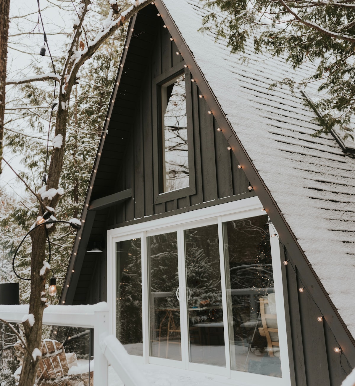 Kabina b'forma ta' A ħdejn nixxiegħa ħafifa bis-sawna u l-hottub