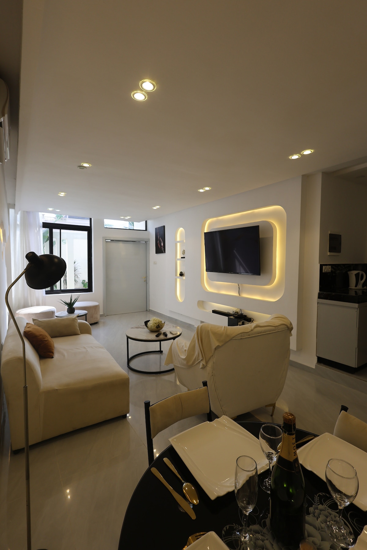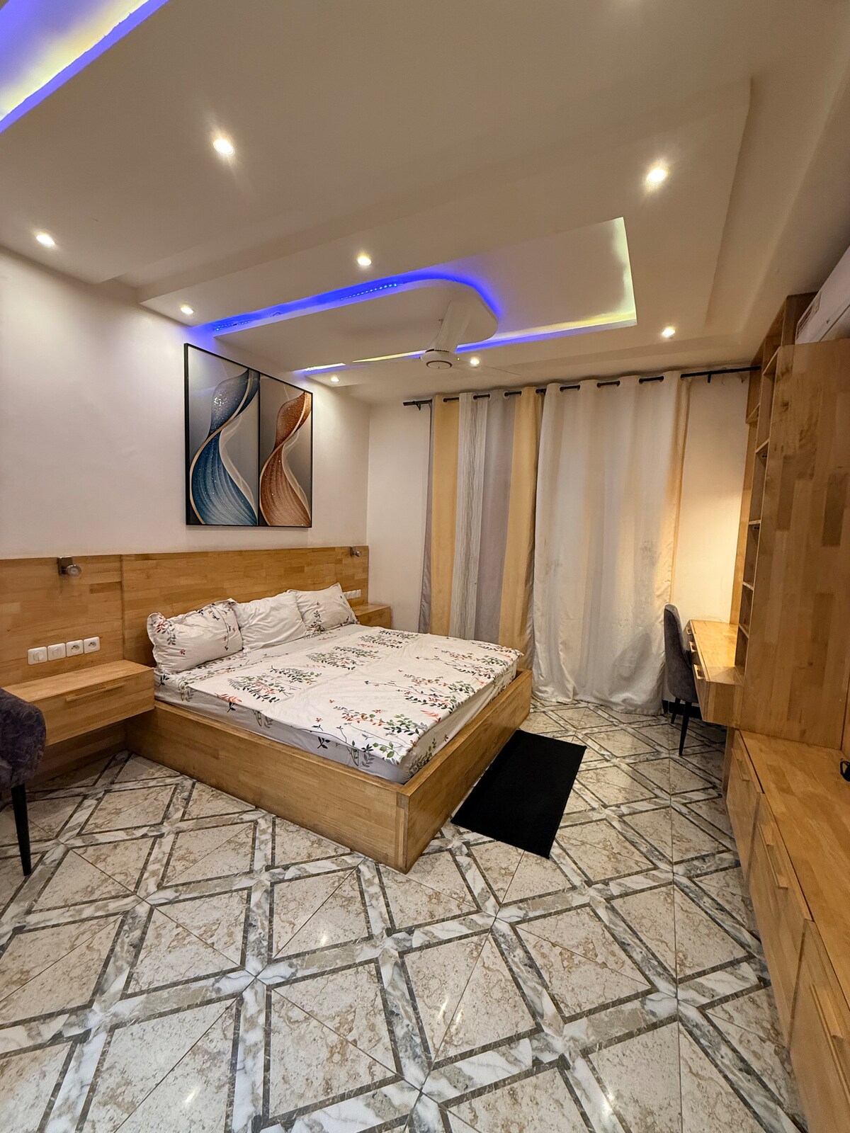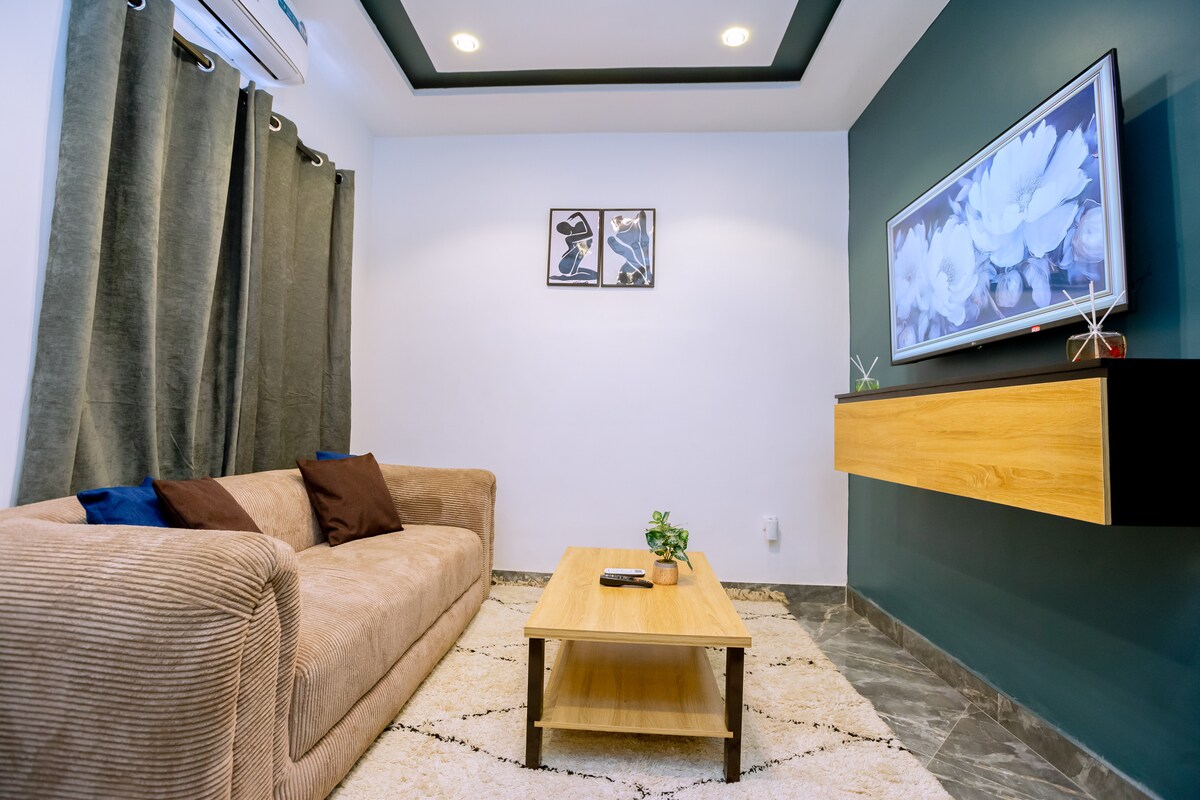 Skopri dan l-appartament modern u mill-isbaħ b'żewġt ikmamar f'Godomey (Maria-Gleta), ideali għal żjara komda. Gawdi minn Internet b'Veloċità Għolja (50 Mbps), magna tal-ħasil u parkeġġ sigur. L-appartament għandu kċina mgħammra b'Air Fryer u dekor pulit, 30-45 minuta mill-ajruport u l-bajjiet. Il-kamra tal-banju raffinata għandha doċċa walk-in bl-ilma sħun. Post fejn toqgħod bl-arja kkundizzjonata, li jgħaqqad is-sigurtà u l-lussu għall-vjaġġi tax-xogħol jew tad-divertiment tiegħek.