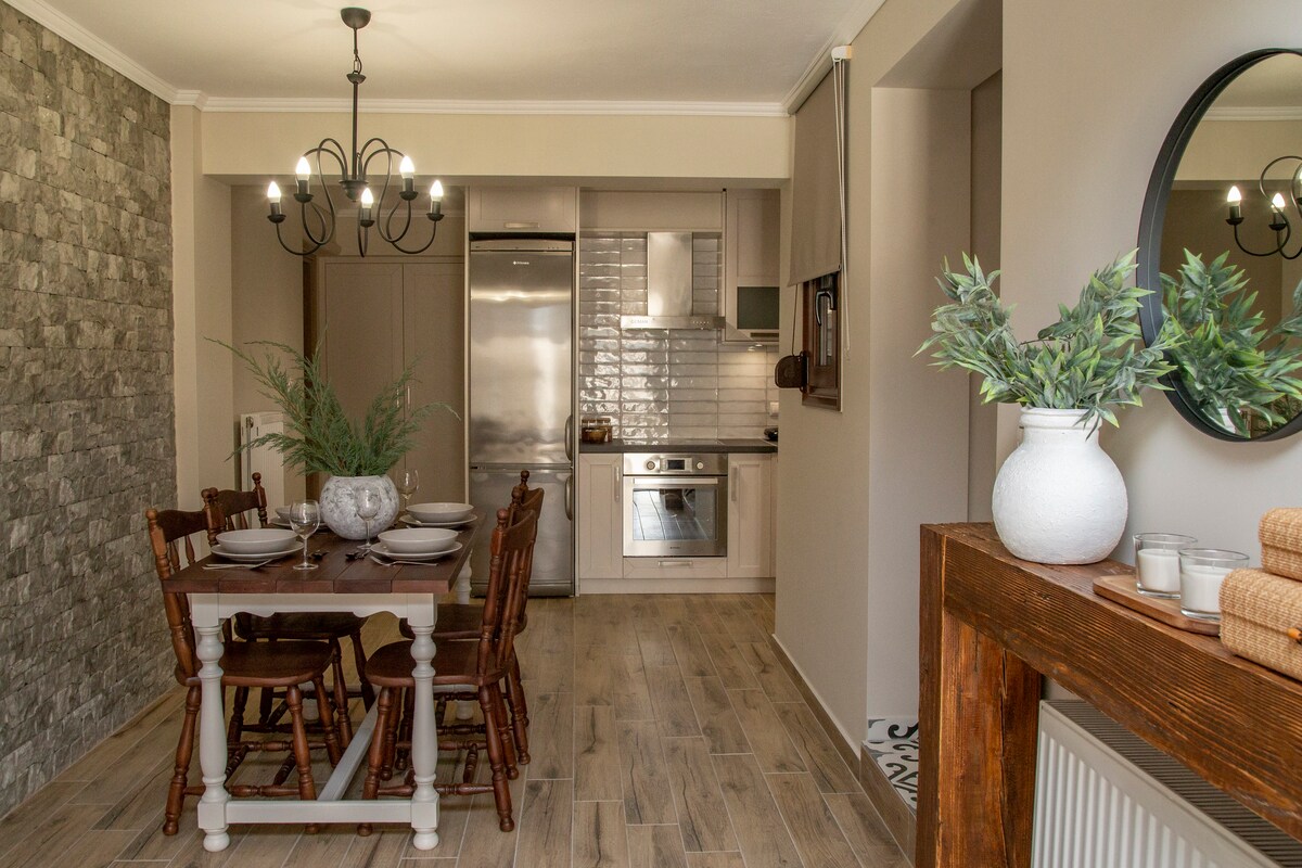 Din il-propjetà li tinsab biss 15-il minuta 'l bogħod mill-belt ta' Trikala, qisha ħarġet minn xi ħolma, imdawra bil-ħaxix u l-ħaxix u qed tistenniek biex taħrab mir-realtà! Ideali għal familja jew grupp ta' ħbieb, imżejna b'mod tradizzjonali u naturali! Titlifx din l-opportunità unika għal btala qasira! Għall-klijenti tagħna hemm Wifi u parkeġġ fit-triq bla ħlas!