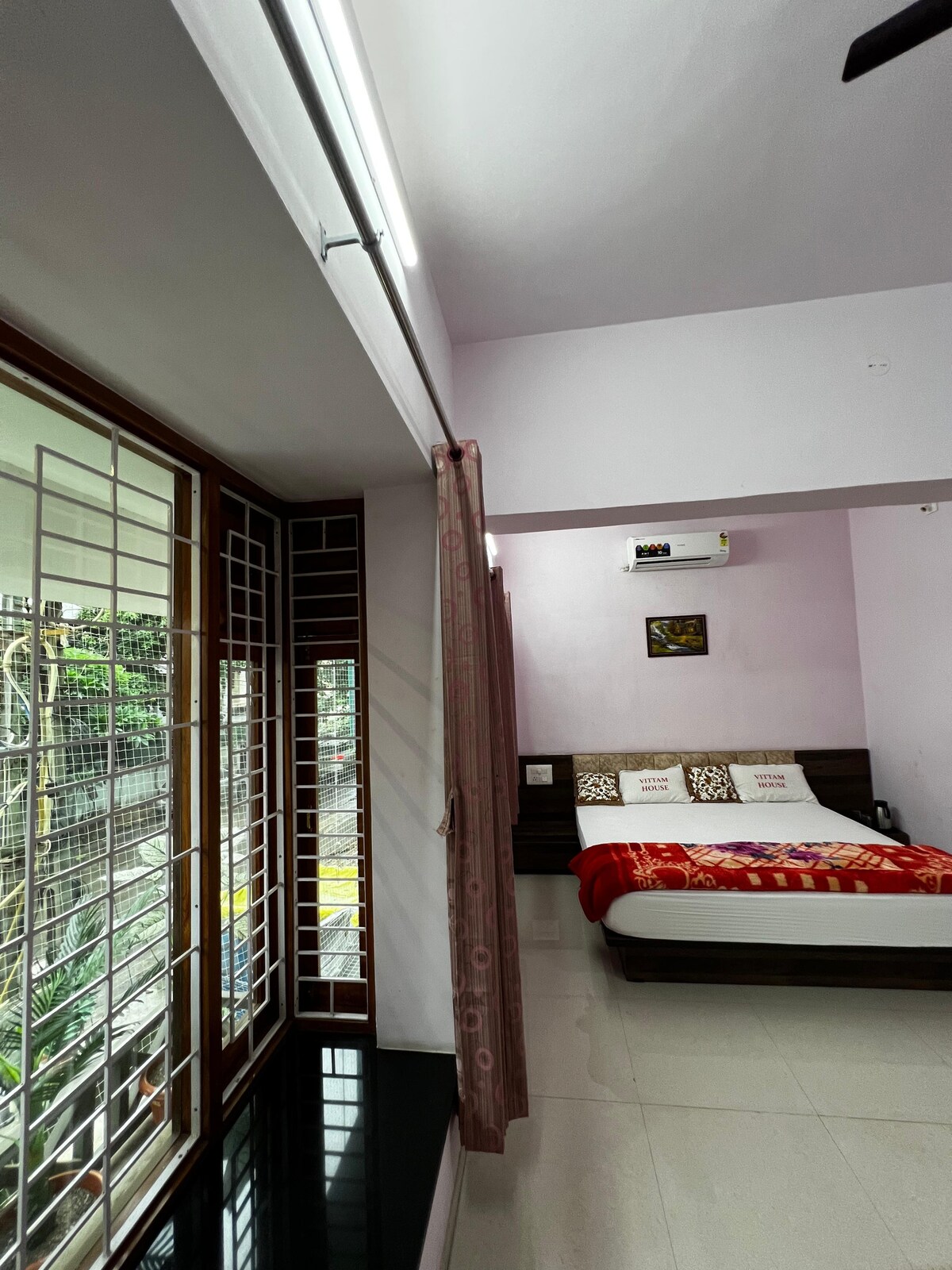 Merħba fid-dar ta' rtirar spazjuża tagħna fuq Kalawad Road! Id-dar tagħna tinsab perfettament f' żona pjuttost residenzjali u toffri żjara perfetta ġewwa Rajkot Kċina Mgħammra b' Mod Sħiħ: Il-kċina tagħna mgħammra bl-appliances kollha, spazju kbir għall-bankijiet u l-affarijiet essenzjali kollha li għandek bżonn biex tħejji ikla delizzjuża Kumditajiet Tajbin għall-Familji: Ideali għall-familji, għall-ħbieb u għal kulħadd, l-ispazju tagħna huwa mfassal biex jilqa' klijenti ta' kull età. Post Konvinient ta' Veduta tal-Ġnien Parkeġġ għall-karozzi/roti 2 Ac Gallarija Terrazzin