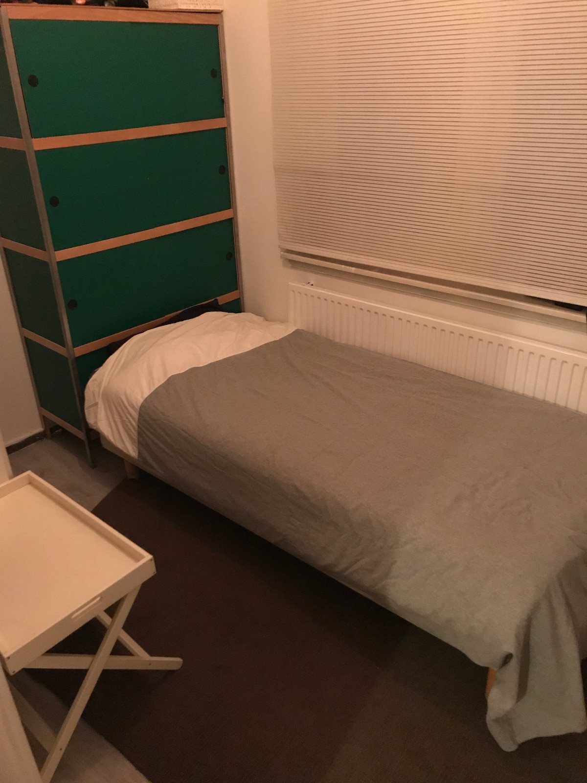 Kamra sabiħa u komda fiċ-ċentru ta' Almere. Il-kamra ġiet rinnovata kompletament u għandha għamara ġdida. Sodda mill-aqwa b'saqqu tajjeb u topper tas-saqqu għal aktar kumdità. Skrivanija, gwardarobba, pultruna. Mgħammar b'kollox: TV (LG full-HD 22"), magna tal-kafè, kitla, friġġ, microwave, ħadida tal-mogħdija u plank. Hekk kif toħroġ mill-bieb, tkun fl-aktar parti vivaċi ta' Almere: il-qalba l-ġdida tal-belt. B'ħafna ħwienet, ristoranti, teatru u ċinema.