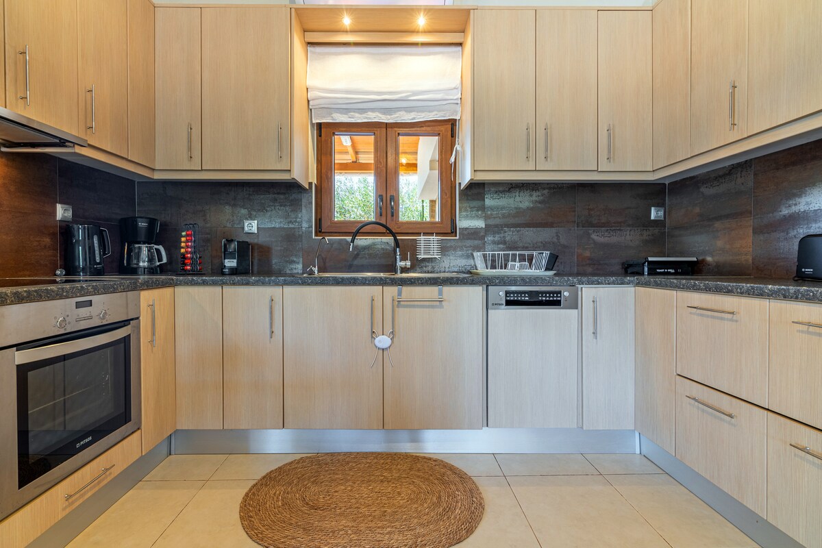 Merħba fil-villa tal-ħolm tiegħek, mibnija f' kuntatt ma' formazzjoni ta' blat! Din ir-residenza toffri żewġ ikmamar tas-sodda b' kmamar tal-banju privati en-suite. (1 b' sufan sodda żejda) Il-villa tinsab fuq biċċa art ta' 6000m2 mimlija siġar tal-arżnu u msaġar taż-żebbuġ. Bosta passi jwasslu għall-bajja magħluqa tiegħek. Il-kċina u l-kamra tal-ikel fl-airrio għandhom veduti panoramiċi tal-baħar. L-ispazji ta' barra ta' 120 m2 jinkludu żona bilqiegħda protetta b' pergola fid-dell, sodod tax-xemx, post tal-ikel fuq barra,barbeque, doċċa