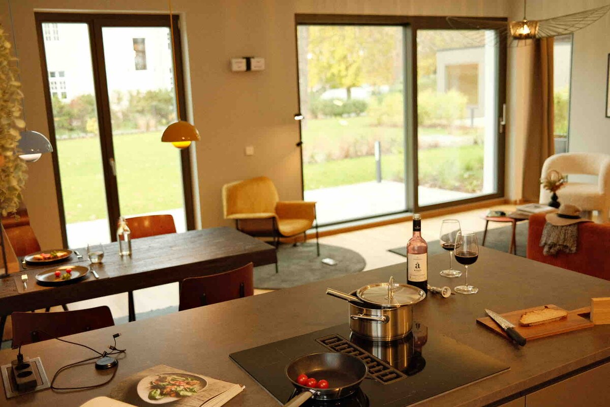 L-appartament duplex jinsab direttament fuq il-Lag piktoresk Teupitzer. Il-bini residenzjali modern tlesta fl-2017 u għalhekk jilħaq l-ogħla standards ta' akkomodazzjoni. L-appartament huwa kkaratterizzat mill-għamara l-ġdida kif ukoll mill-ħafna sorsi ta 'dawl, li jgħinu biex tinħoloq atmosfera komda. Iż-żewġ sulari għandhom veduta mill-isbaħ tal-lag u huma dejjem mimlija dawl tax-xemx mit-twieqi l-kbar. SmartTV, żewġ kelliema u l-wifi jlestu Airbnb 😊