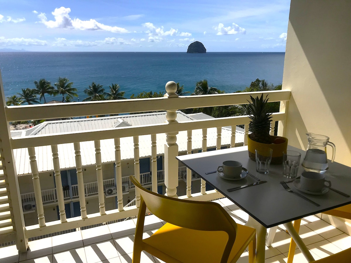 Post eċċezzjonali fejn tista' tgawdi Martinique! Veduti maġiċi, aċċess dirett għall-baħar u l-pixxina Black Diamond???? L-istudjo abjad eleganti tagħna għandu terrazzin sabiħ bi kċina fuq barra, sabiex tkun tista' tgħix bir-ritmu tal-gżira, imdawra bil-lapping tal-mewġ u l-kanzunetta tal-għasafar. Il-bajjiet sbieħ jinsabu madwarhom, bħal Anse Noire, fejn tista' tgħum ma' fekruni kbar! U l-ħafna rħula tipiċi huma opportunità biex tiskopri l-kultura Creole.
