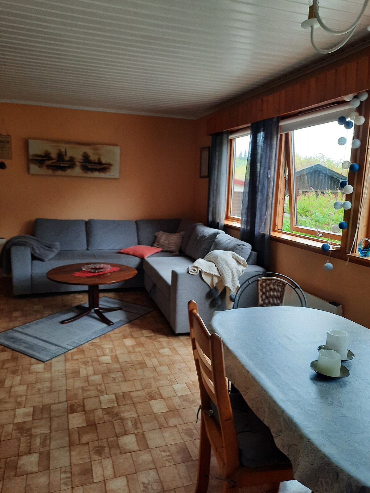 Dan huwa post 'il bogħod mit-toroq tal-belt, mill-istorbju u mill-isbaħ. Iż-żona hija rurali li tħares lejn il-fjords u l-muntanji. Triq wieqfa u ftit dawriet iwassluk hawn għal kwiet u paċi maqtugħa f 'dar rustika żgħira b' ħafna natura disponibbli. L-appartament huwa mżejjen b 'sezzjoni żgħira bi kċina li fiha l-affarijiet essenzjali biex tagħmel ikliet sempliċi, u b' arredamenti faċli. Għandu kamra tal-banju bil-madum b 'doċċa. WiFi.