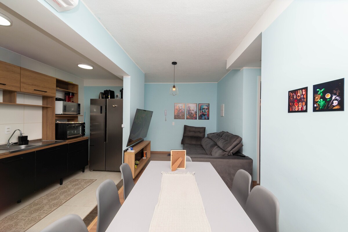 Appartament ta' taħt l-art ġewwa Gravataí, ġdid, modern, sigur. Tinsab 100 metru 'l bogħod minn Main Av. 5 minuti' l bogħod miċ-ċentru, 15-il minuta' l bogħod mill-ajruport ta' Poa, qrib l-ispiżeriji, is-swieq, is-siġar tal-frott, id-dar tal-laħam, il-ħwienet tal-forn u tal-konvenjenza. Garaxx kopert, wi-fi, smart tv, dawl tal-kmand tal-vuċi, pixxina u park tal-logħob, concierge virtwali.