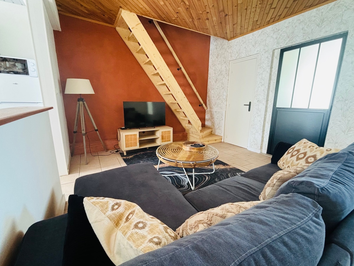 Appartament duplex mdawwal ħafna li jinsab fil-qalba ta' Petit-Fort-Philippe, f' Place Calmette, qrib il-ħwienet lokali kollha bil-mixi. Rinnovat kompletament. Ideali għal koppja jew professjonisti li jżuru. 2 minuti mixi 'l bogħod mill-bajja u 2 minuti bil-karozza' l bogħod mis-CNPE. Parkeġġ bla ħlas fit-triq It-tariffi tat-tindif jinkludu wkoll il-provvista ta 'lożor u xugamani għaż-żjara tiegħek. Il-pets huma milqugħa billi tiżgura l-indafa u l-ħarsien tas-sufan.