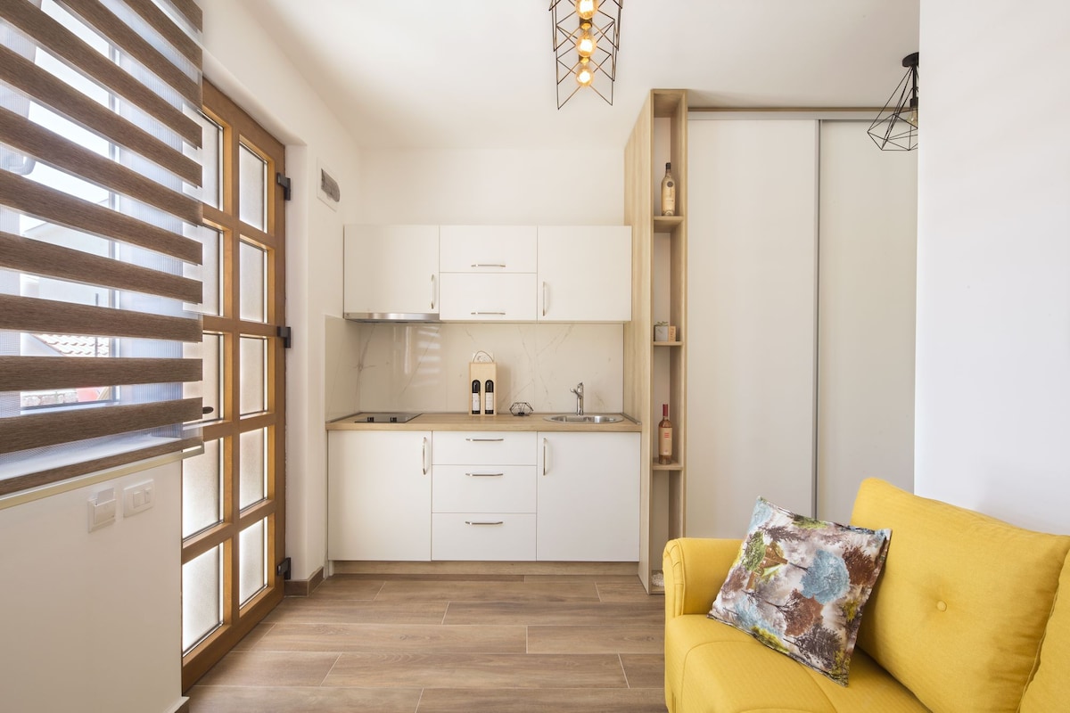 Merħba f' appartament ta' studio komdu u komdu li jinsab f' żona sabiħa u urbana ġewwa Budva! Dan l-istudio mill-isbaħ u mingħajr tbajja' għandu sufan sodda doppja komdu, kċina mgħammra b' kollox u terrazzin sabiħ. B' biss 150 metru mill-istazzjon ċentrali tal-karozzi tal-linja u mixja pjaċevoli ta' 15-il minuta sal-bajja, huwa l-post perfett għal żjara rilassata u pjaċevoli.