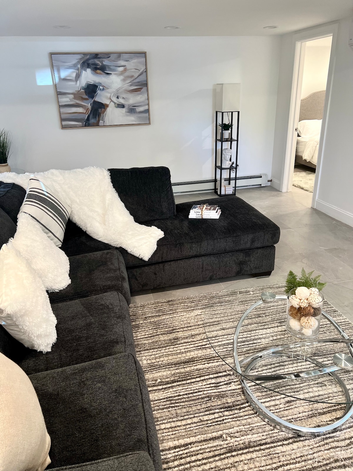 Il-kumdità tiegħu se tgħinek tħossok komdu/a wara li tidħol fil-post. Din is-Suite Żgħira għall-Klijenti ta' 280 pied kwadru hija kompletament mgħammra u mżejna tajjeb - tiġi b' kull ħaġa li tista' timmaġina. Dan jikkonsisti f' kamra tas-sodda waħda, kamra tal-banju waħda u żona tal-kċina/tal-ikel/tas-salott Daqsijiet tal-kmamar: Kamra tas-sodda: 10 piedi x 7 1/2 piedi Żona DR tal-kċina LR: 19 pied x 10 piedi Banju: 40" x 80" Minħabba kemm hija qrib ta' kollox - Huwa perfett għall-klijenti li qed jippjanaw li jivvjaġġaw lejn il-belt bil-ferrovija jew jiċċaqalqu b' Uber.