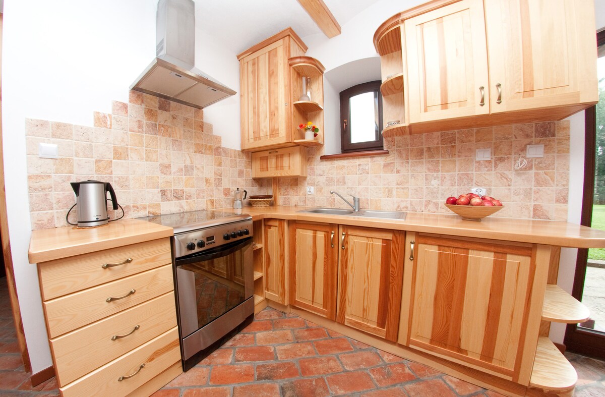Dar tal-vaganzi ġewwa Masuria , waħda fuq biċċa art magħluqa ta' 1000m2, bil-pets. Il-cottage għandha kċina mgħammra b' mod komdu b' salott, kamra tas-sodda u kamra tal-banju b' doċċa. Aħna nipprovdu lożor, xugamani, proġekter u skrin, nipprovdu dgħajsa, kayak, roti, SUPs, sodod tax-xemx. Fil-propjetà, swing, grill, fire pit, terrazzin mgħotti b' għamara ta' barra, qrib ħafna ta' wieħed mill-iktar lagi intelliġenti f' Masuria. Kif tiċċarġja l-vetturi mis-sokit biss wara ftehim u għal tariffa addizzjonali