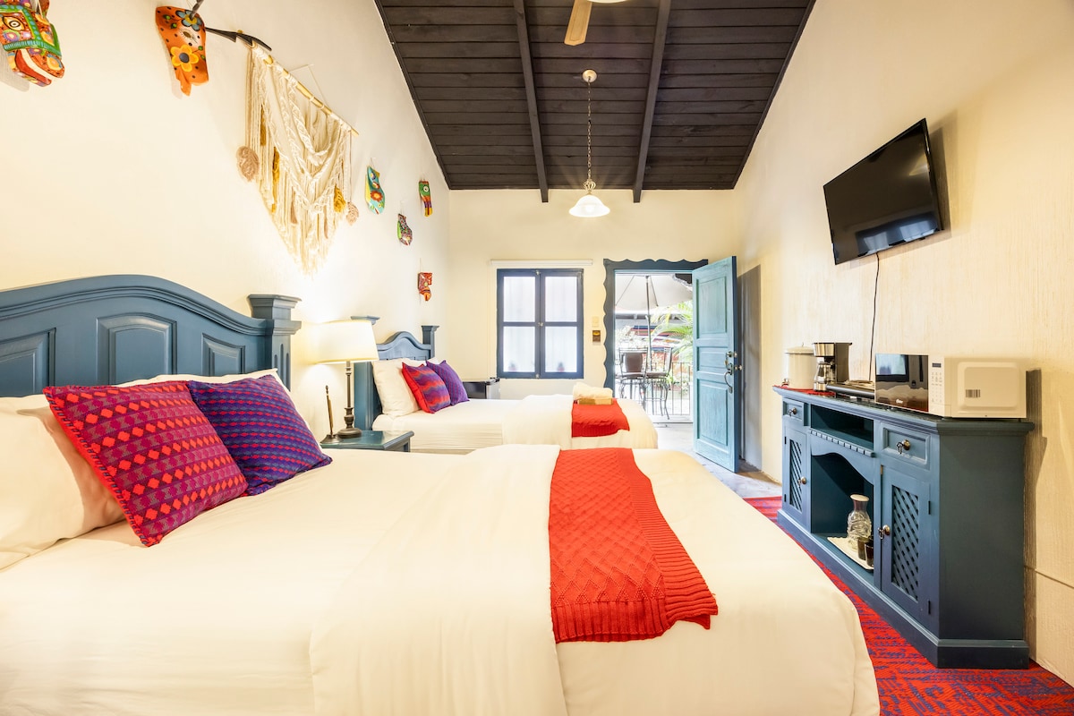 Oqgħod f' kamra spazjuża b' żewġ sodod doppji, ideali għal 2 sa 4 persuni. Jinkludi kolazzjon bla ħlas fuq il-bejt b' veduti mill-isbaħ tal-lag u tal-vulkani. Gawdi servizz 24 siegħa kuljum, akkoljenza apposta u spazji moderni mfassla għall-kumdità tiegħek. Il-kamra għandha magna tal-kafè bil-kafè u t-te, ilma bla ħlas, hair dryer u kamra tal-banju privata. Ideali għall-familji jew għall-gruppi li qed ifittxu l-kumdità u esperjenza unika ġewwa Panajachel.