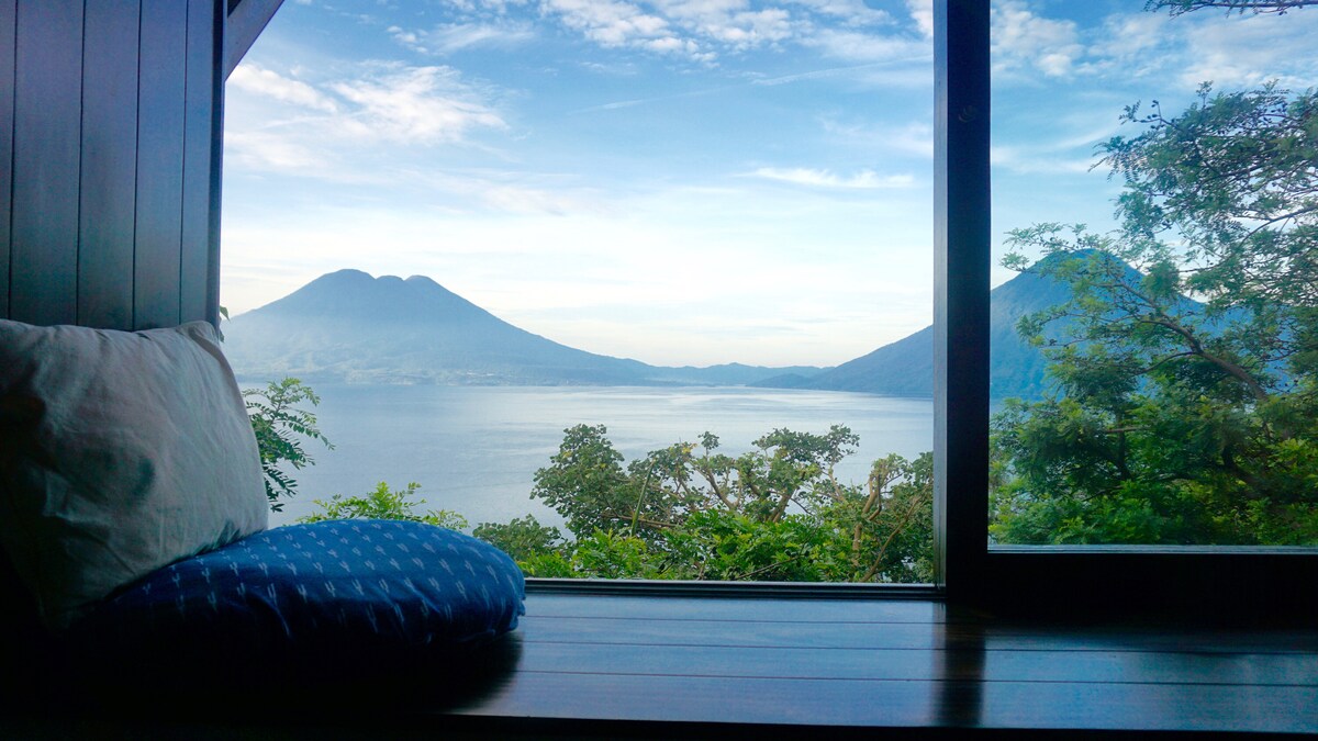 Boutique cottage sabiħa mibnija bi twieqi kbar tal-bajja u nifs li jagħtu veduti tal-vulkani maestużi tal-Lag Atitlan. Din il-cottage li taħdem bid-dawl tax-xemx għandha kċina żgħira, gwardarobba u saqqijiet u lożor tal-ogħla kwalità. L-IKTAR INTERNET AFFIDABBLI FUQ IL-LAG —- sistema STARLINK / solari! Din l-oażi unika ta' rtirar fil-muntanji tinsab fuq għolja paċifika 'l bogħod mill-istorbju tal-belt u b' ilma pur tan-nixxiegħa. Il-lezzjonijiet tal-yoga, is-sawna u ċ-ċerimonji huma disponibbli fuq talba. Il-post perfett fejn tista' tirrilassa 🙏