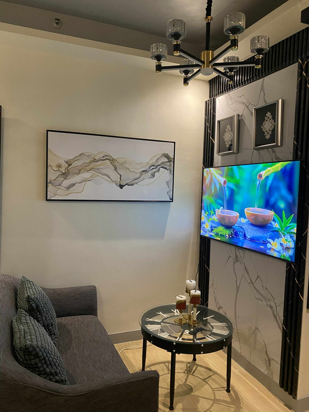Dan il-post uniku għandu stil kollu tiegħu. Ħoss l-atmosfera NATURALI, SĦUNA u ta 'KUMDITÀ tas-sitwazzjoni ċatta tiegħi fil-qalba ta' Cong. TOWN CTR. COND., qc. Standard nadif, miżmum tajjeb, issanitizza lożor ċatti u friski premium u 6 imħaded fluffy. RILASSANTI u comfrtable QUEEN size orthopedc bed wth premium FOAM foam. Appliances ċatti mgħammra kompletament: 🔹karaoke w/ 2 mic 🔸49" smart tv wth premium netflix acct. 🔹1.5hp unità ġdida ta 'aircon wth remote control doċċa 🔸unli wf installata 🔹sħuna/kiesħa