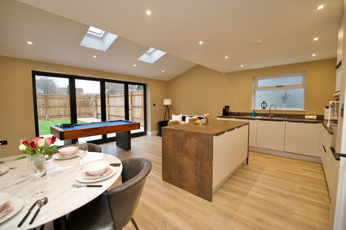 Qrib Warwick Castle & Racecourse, id-dar eleganti u spazjuża tagħna hija tajba għall-koppji, għall-familji u għall-klijenti korporattivi. B' spazju apposta għax-xogħol, port għall-iċċarġjar tal-vetturi elettriċi u magna tal-kafè, aħna nieħdu ħsieb il-professjonisti iżda l-ispazju tagħna huwa wkoll komdu u komdu għall-familji, il-koppji jew il-ħbieb li jżuru kunċerti u jiem tat-tiġrijiet. Il-log-burner fiż-żoni tal-għajxien u tal-ikel se jżommok komdu u rilassat.