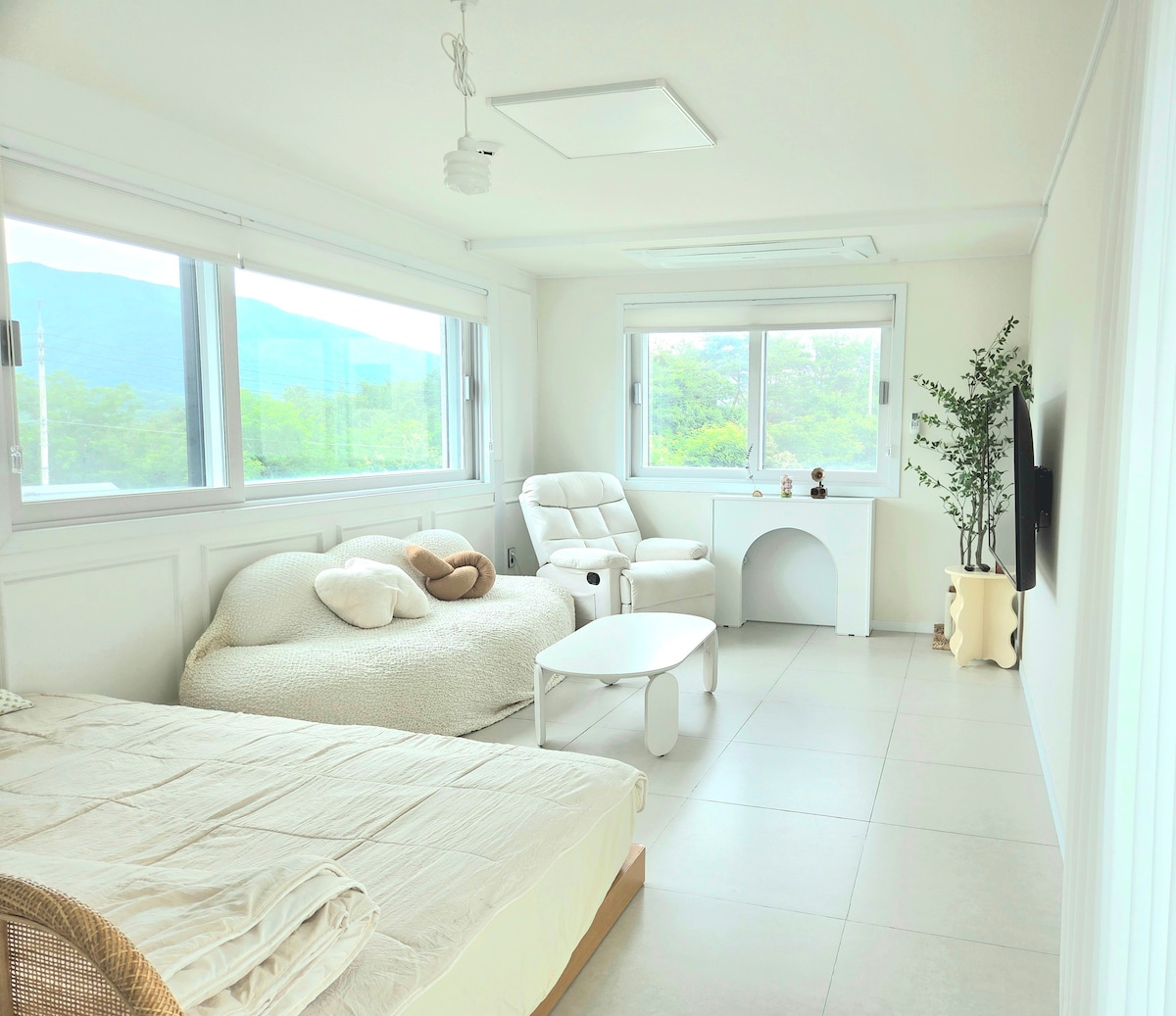 반드시 2인까지만 입실 가능한 숙소입니다. 이 부분 꼭 인지하시고 예약부탁드립니다. 케이블TV만 제공 *넷플릭스, 유튜브 등은 숙소 제공안되며, 개인계정 접속하여 시청가능. [엔틱 & 모던 House ] 여행의 여독을 대화와 휴식으로 풀며, 하루를 마무리할 수 있는 공간 * 블루투스 벽난로, 6인용 전기밥솥, 전자레인지, 전기포트, 세탁기 19kg , 건조기 9kg, 스마트TV 60인치, 공기청정기, 가습기, 진공청소기, 양문형 냉장고, 가스레인지, 스탠드 에어컨 15평형 * 킹침대, 소파, 소파테이블, 식탁, 의자 * 각종 조미료, 쿡웨어 조리도구 비치. * 해돋이, 해변 피크닉에 사용할 수 있게, 휴대용 에크체어 2개와 간이테이블 비치.