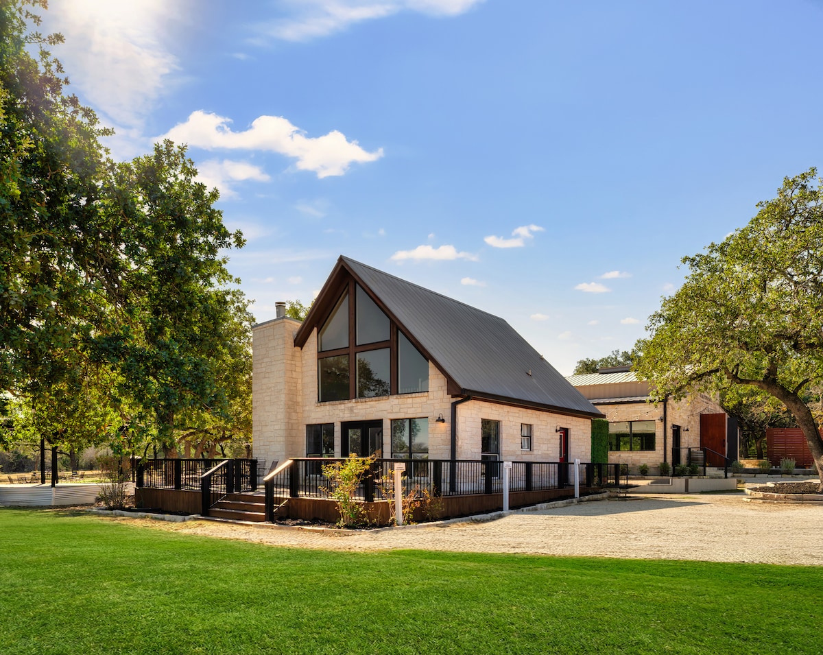 Merħba f' Bee Creek Cottage — ħarba moderna u eleganti ġewwa Texas Hill Country. Ideali għall-koppji, għall-gruppi ż-żgħar jew għaż-żjarat taż-żwieġ, din l-oożi privata toffri veduti tan-natura, interjuri eleganti u aċċess faċli għall-fabbriki tal-inbid u Austin. Gverta 🌊 privata b' hot tub 🔥 Ħofra tan-nar b' siġġijiet Adirondack u veduti tal-għoljiet Ċentru ta' Kumditajiet Maqsumin 🕹️ mal-Oħrajn: Pixxina, Hot tub, trampoline, żoo tal-pets u Kamra tal-logħob 🎨 Aċċess għal gallerija tal-arti fuq il-post u mogħdijiet għall-mixi 🍷 Minuti mill-fabbriki tal-inbid ta' Texas, il-BBQ u l-Lag Travis