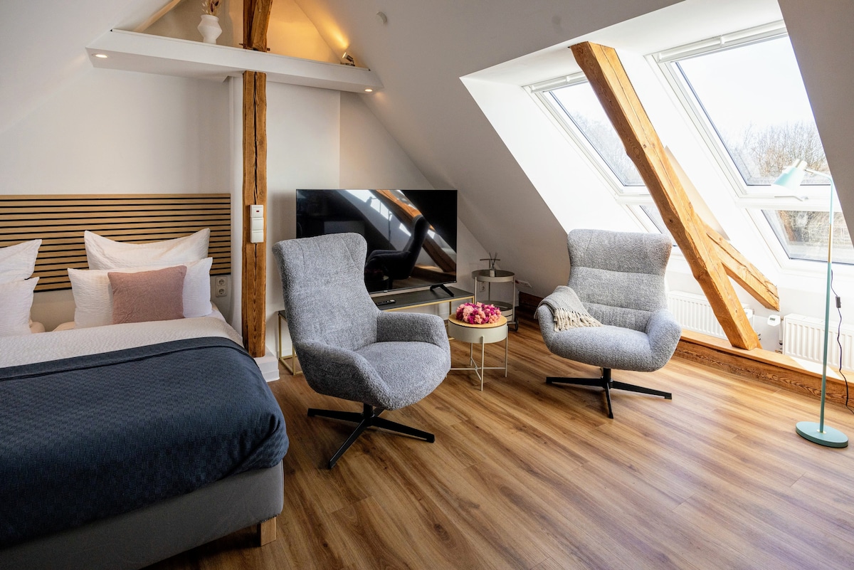 ☆ WELCOME TO AHRENSBURG ☆ The newly renovated apartment is perfect for 1-2 people. Bright attic apartment modern and cozy. → Subway to Hamburg 5 minutes away → City center 900m → 24h check-in → huge 65 inch smart TV with soundbar → 180cm x 200 cm king-size bed → Kitchen with freezer, stove, oven, microwave → Coffee machine → Various types of tea → Waipu TV: Cable television and 40,000+ movies and series on demand → High-speed WLAN with 500 Mbit → Parking spaces on the street