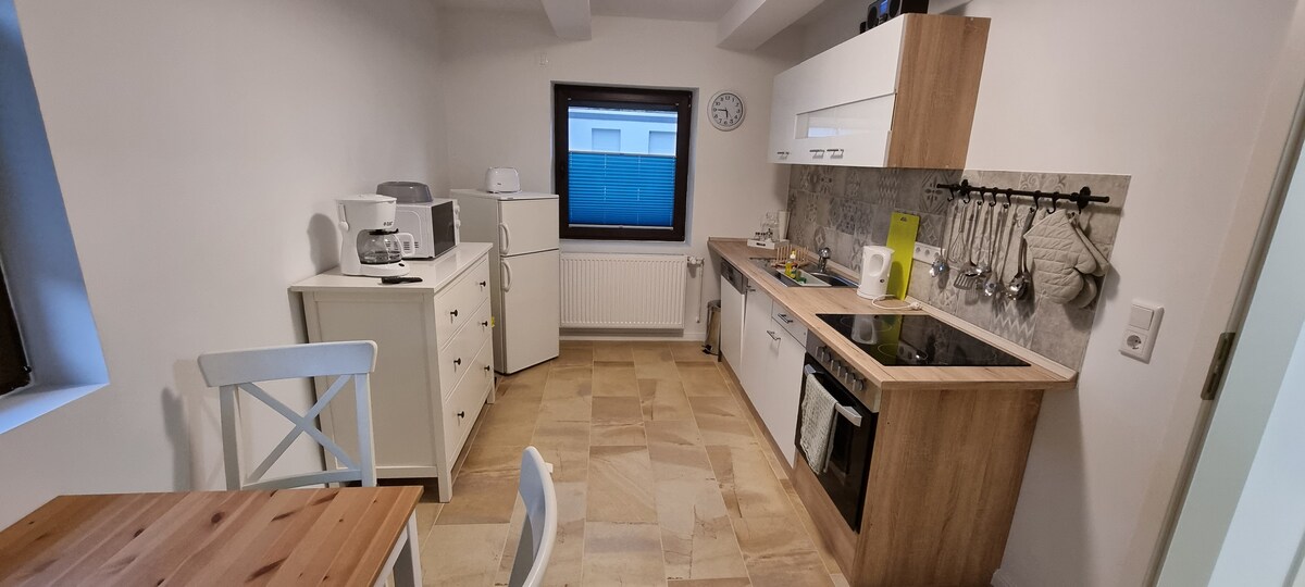 Appartament amikevoli b 'dekorazzjoni komda. Magna tal-kafè u kittles, kif ukoll toasters, stovetop ta '2 platti u friġġ huma pprovduti. Kamra tal-ilbies hija disponibbli. Post rurali! Ħafna attivitajiet ta 'divertiment fil-qrib, għat-tfal tar-Rastiland, l-għeluq Wisent. Il-Harz, Steinhuder Meer u l-Weser Uplands huma veloċi u faċli biex jintlaħqu. Żwiemel stabbli ħdejn id-dar kif ukoll knejjes tal-monasteru meraviljuż..... Ftit post fejn toħlom!