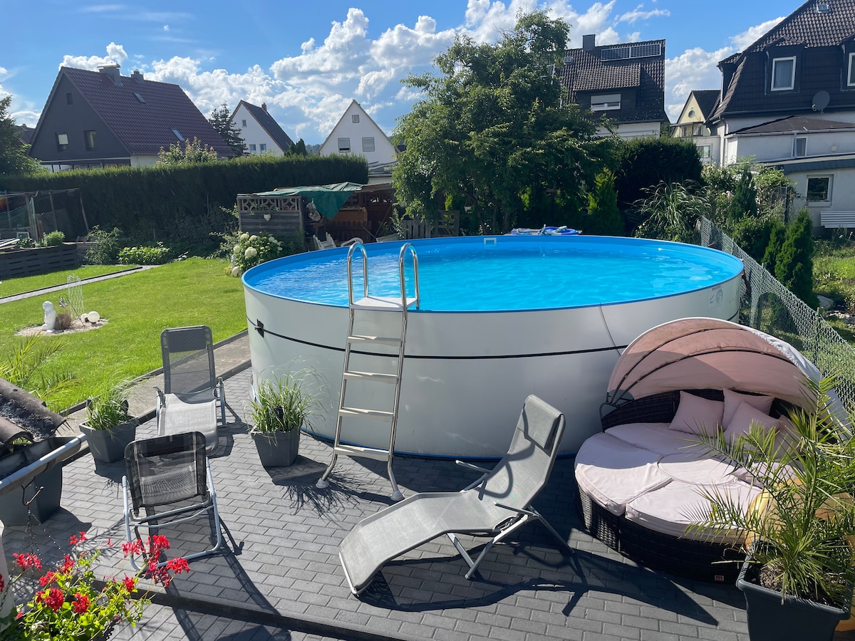 Behagliches Haus am Waldrand- Pool, Sawna u Kamin