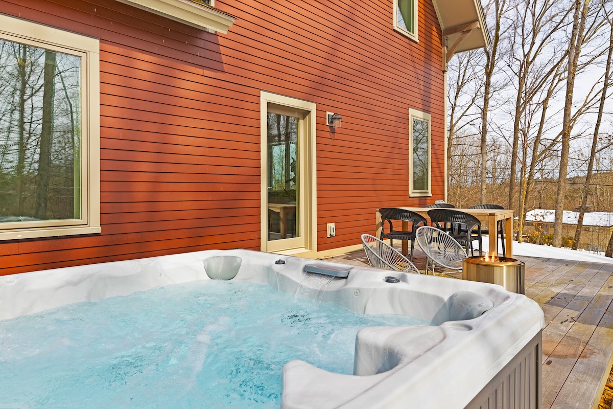 A-Frame faċċata tax-xmara ċkejkna w/Veduti tal-Muntanji, Hot Tub